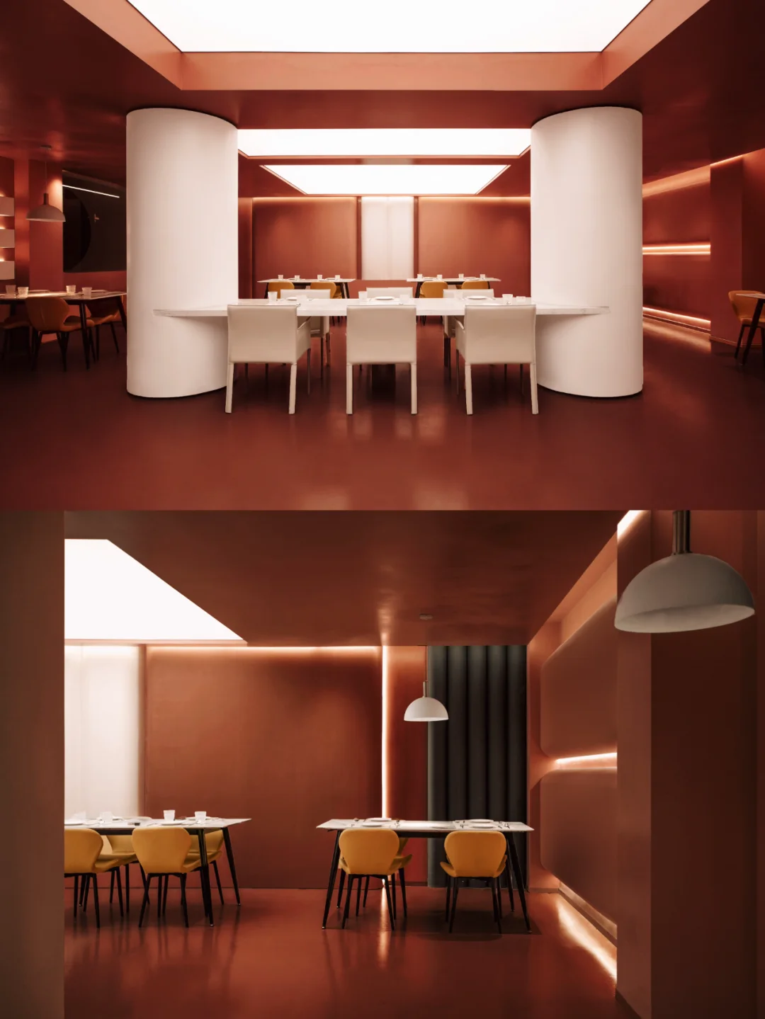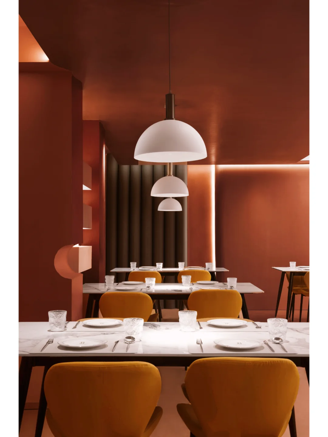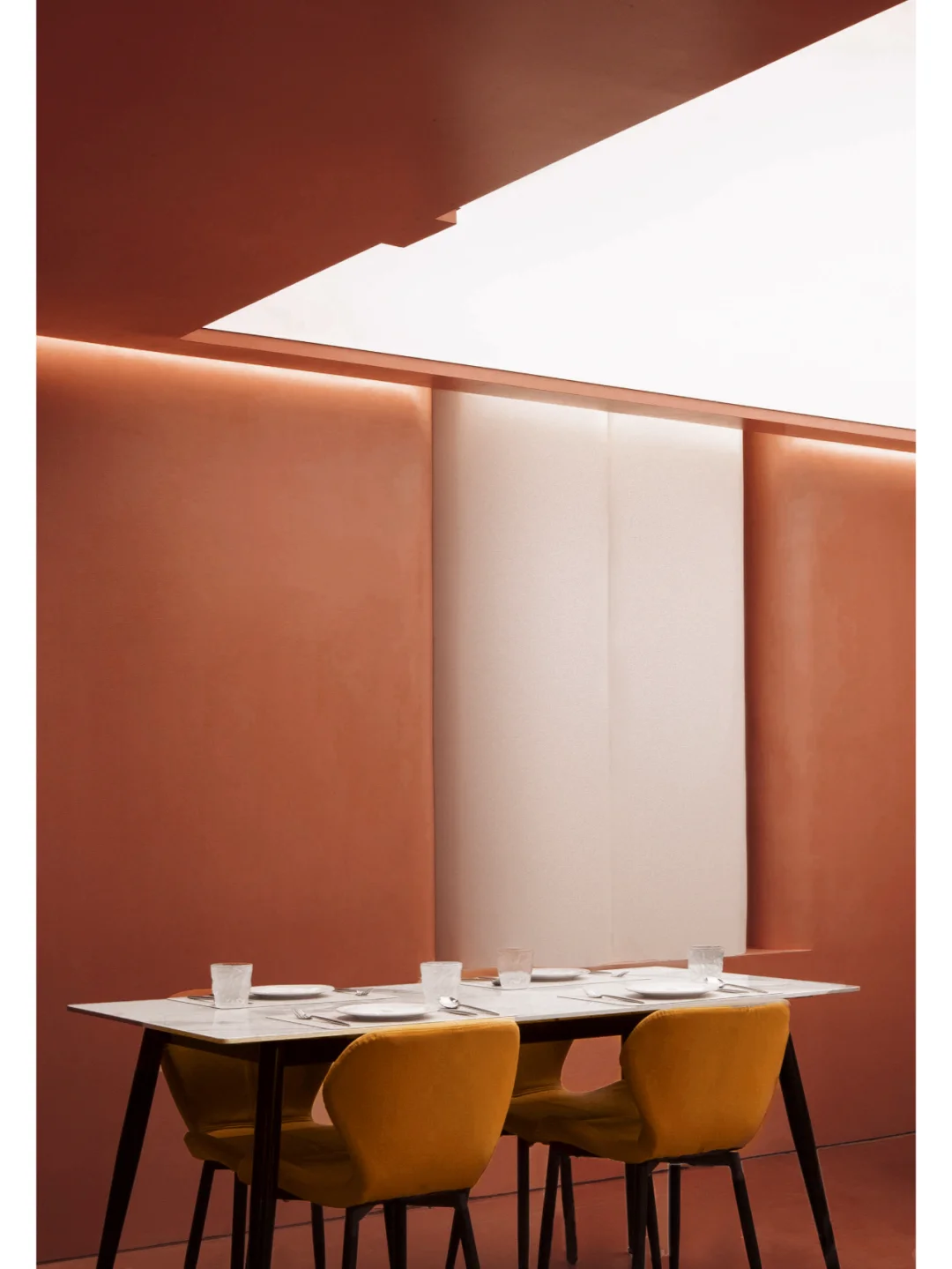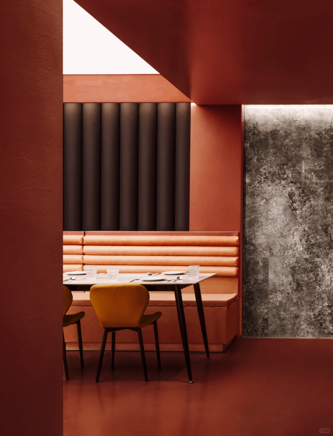 除了巧妙运用色彩达到空间的纯净外,赤梁在解构情绪的感官上则更为直接,其希望顾客能在用餐时集中于自我,进而塑造具有沉浸式的就餐环境,形成味觉、视觉和知觉的一致性。