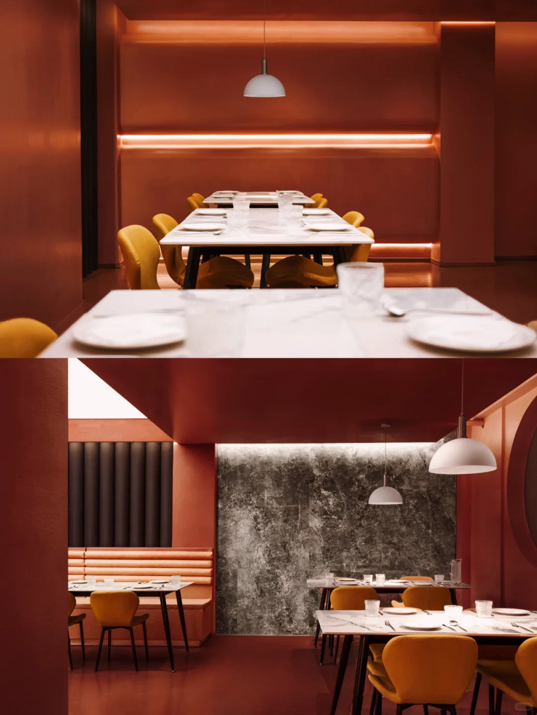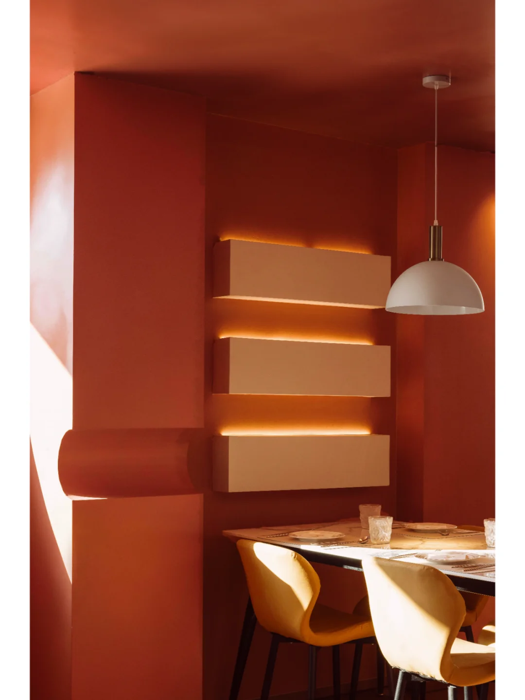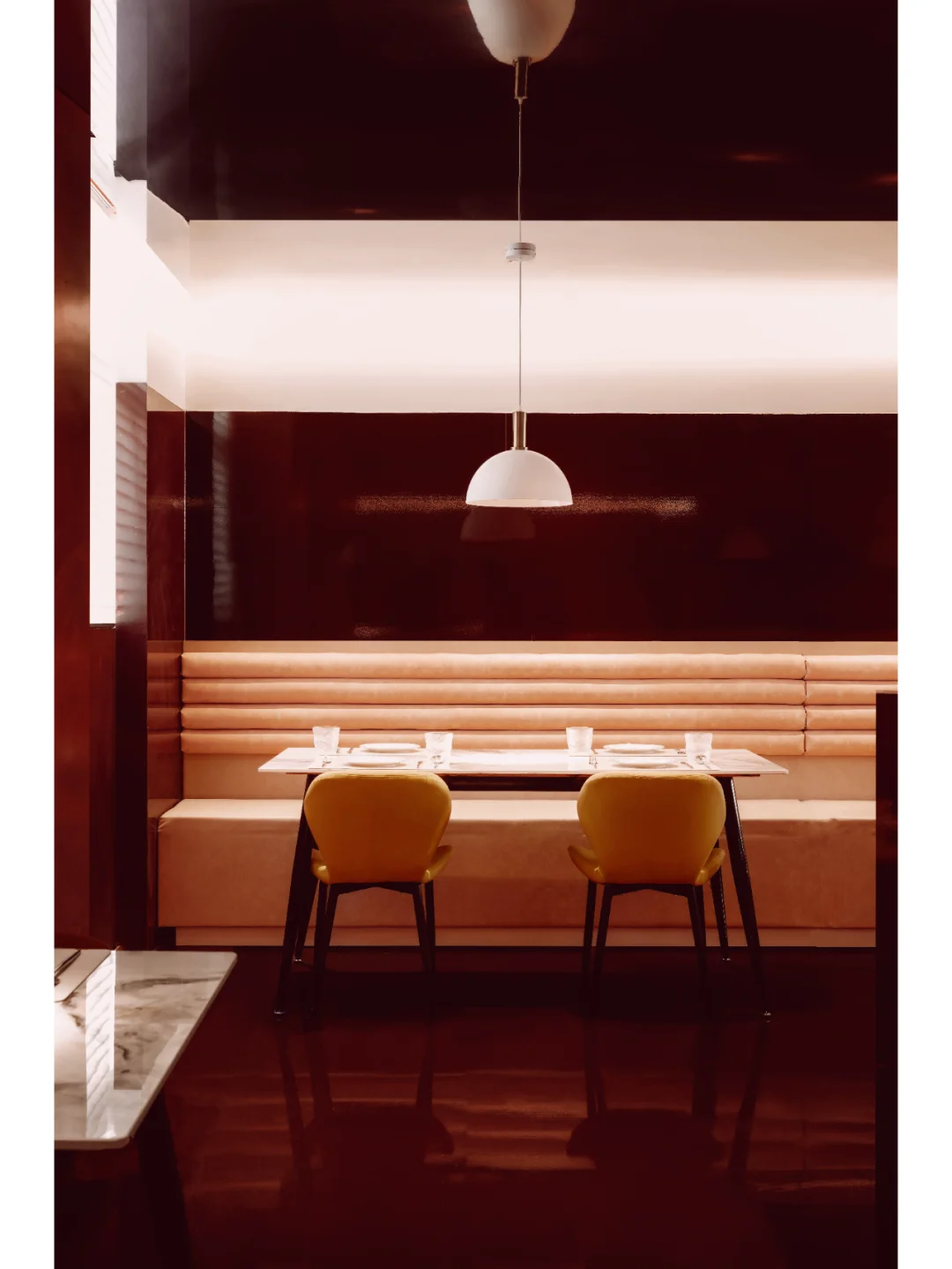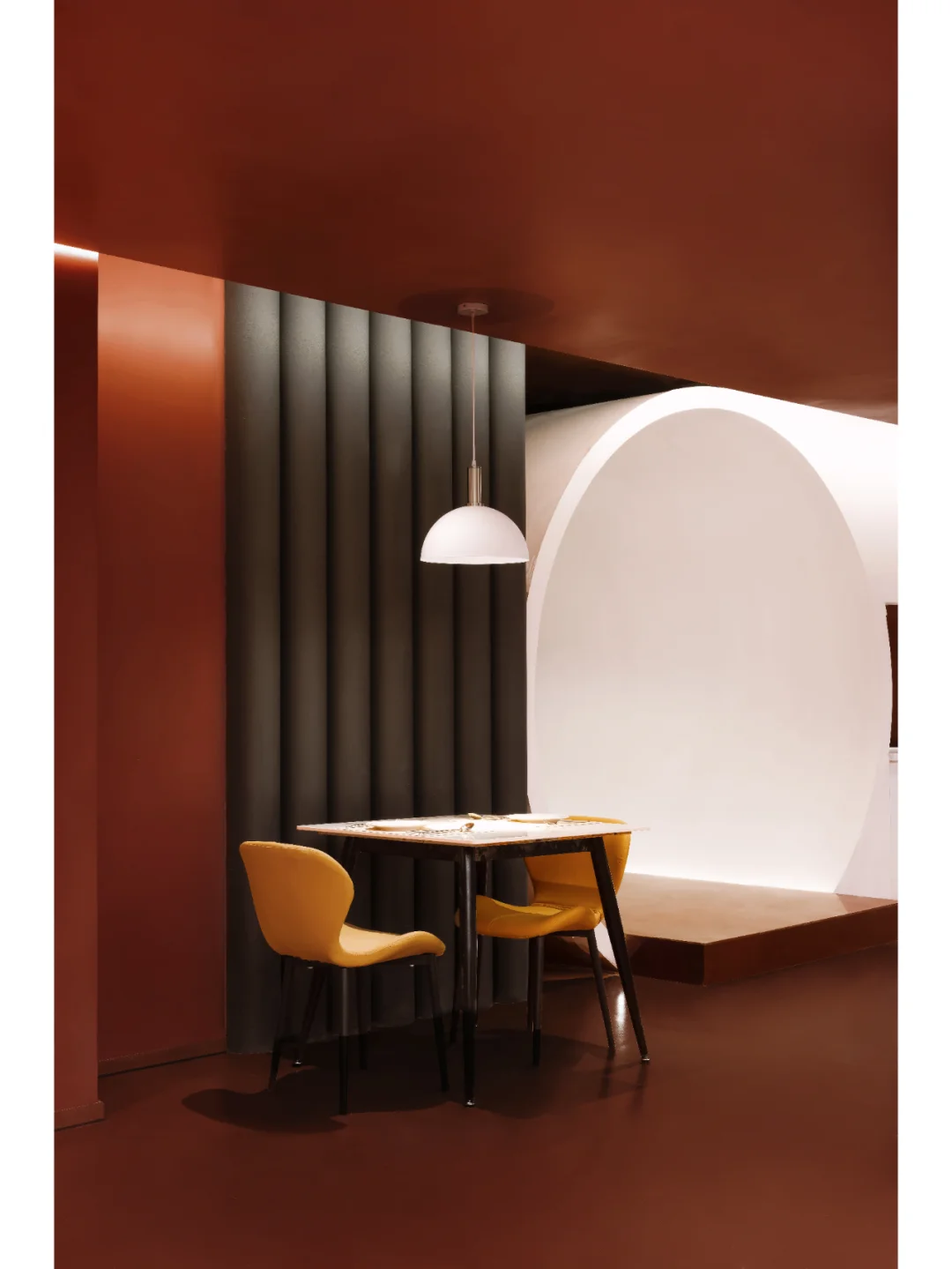 除了巧妙运用色彩达到空间的纯净外,赤梁在解构情绪的感官上则更为直接,其希望顾客能在用餐时集中于自我,进而塑造具有沉浸式的就餐环境,形成味觉、视觉和知觉的一致性。