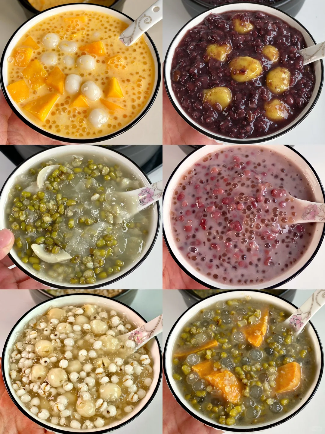 经常熬夜、干燥上🔥、小脸腊🟡姐妹一定要喝的6款小甜汤! 水水润润!软糯香甜,贼好喝~ 每一款都巨巨巨好喝!!糯叽叽的 做法简单!比奶茶还好喝!!营养又健康 1⃣️芒果西米露 2⃣️红豆紫米粥 3⃣️银耳绿豆羹 4⃣️红豆西米露 5️⃣薏米莲子西米露 6️⃣绿豆红薯西米露 都是对女孩子友好的食材!营养又美味! 我每周都会坚持喝一碗!给我💯张面膜也不换!