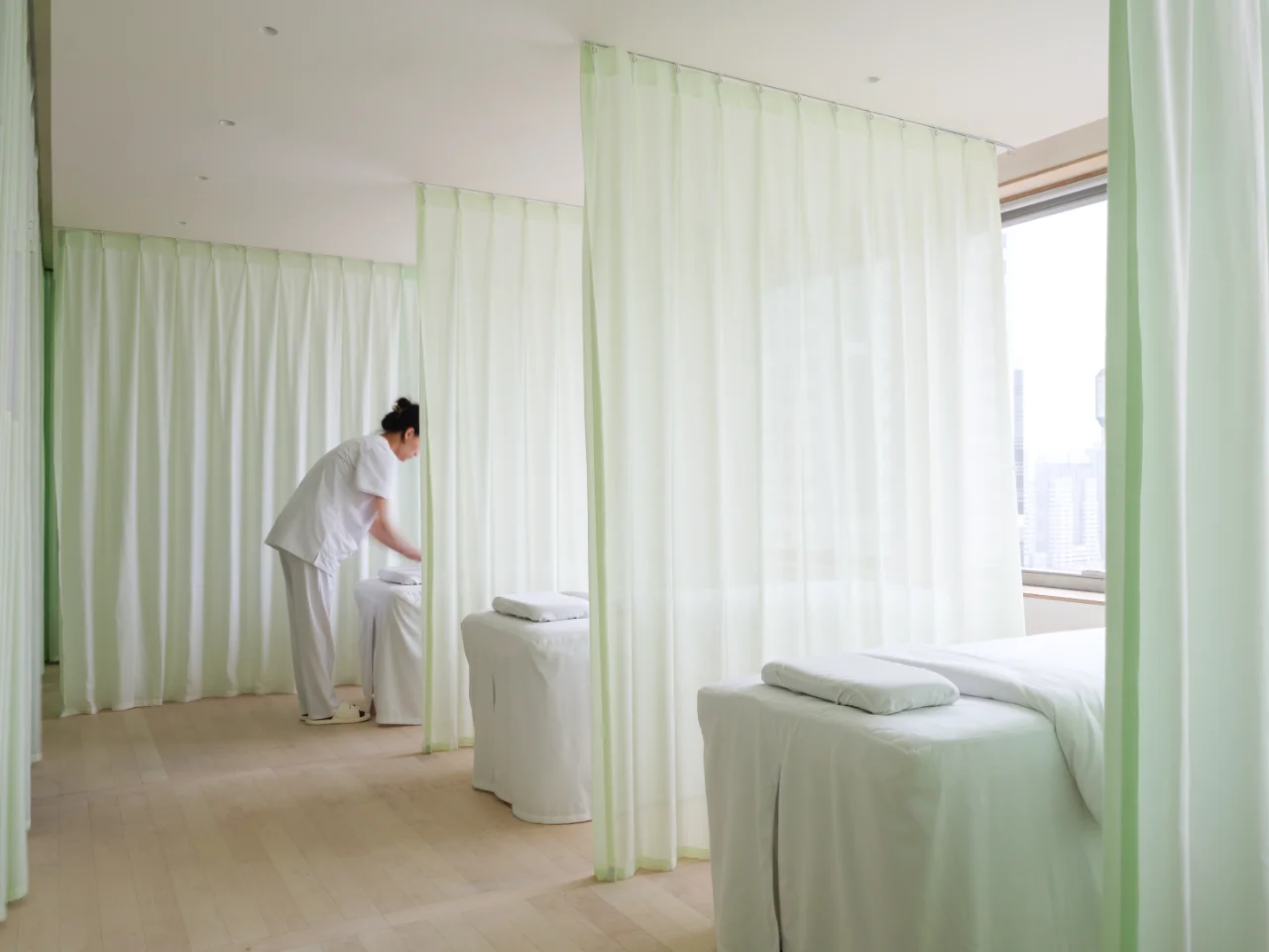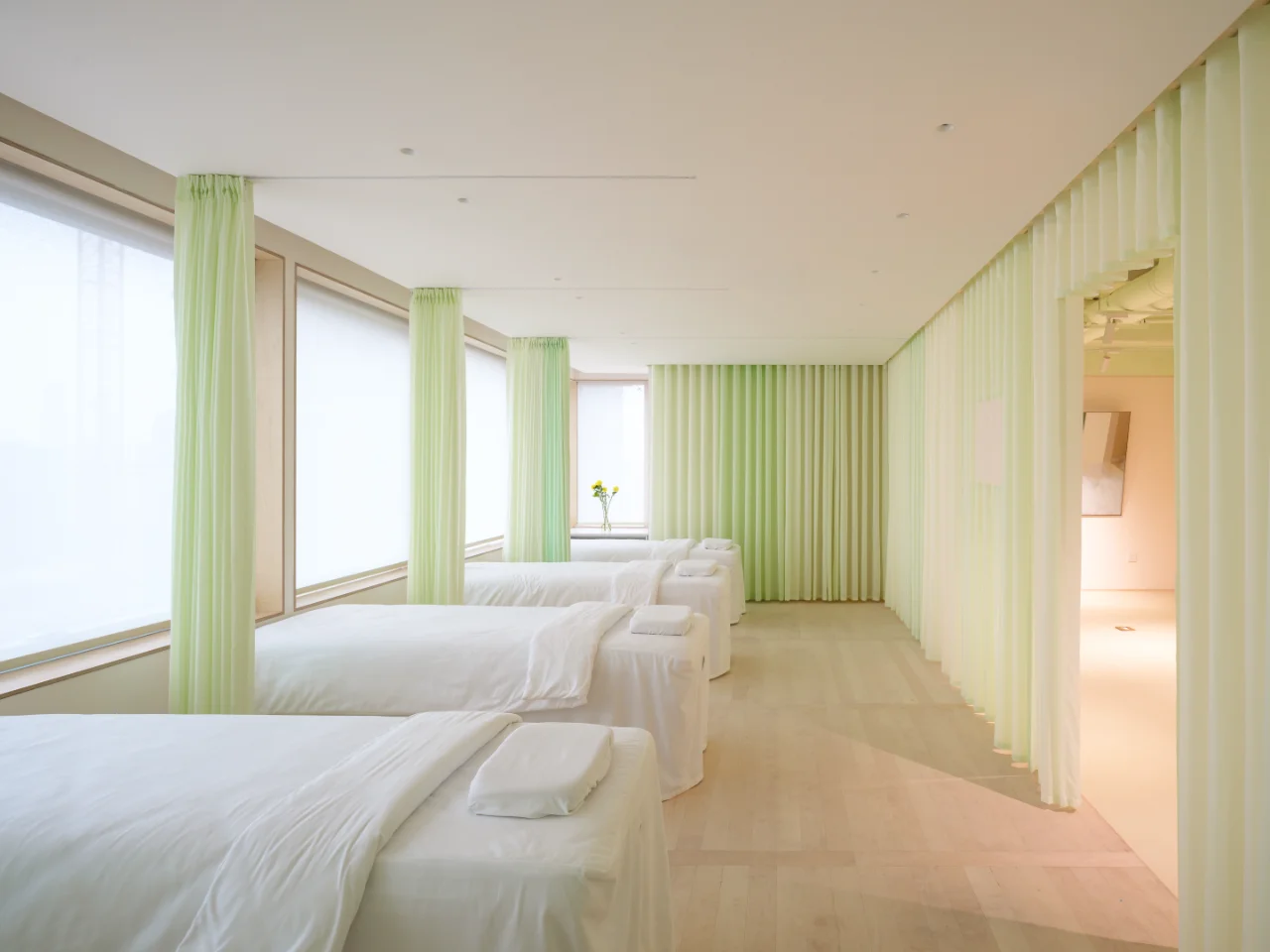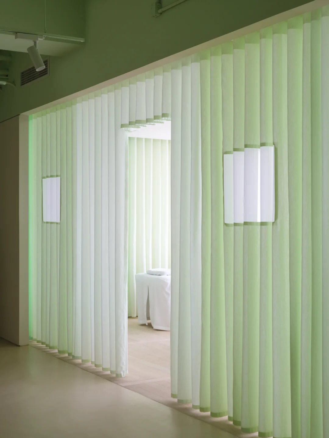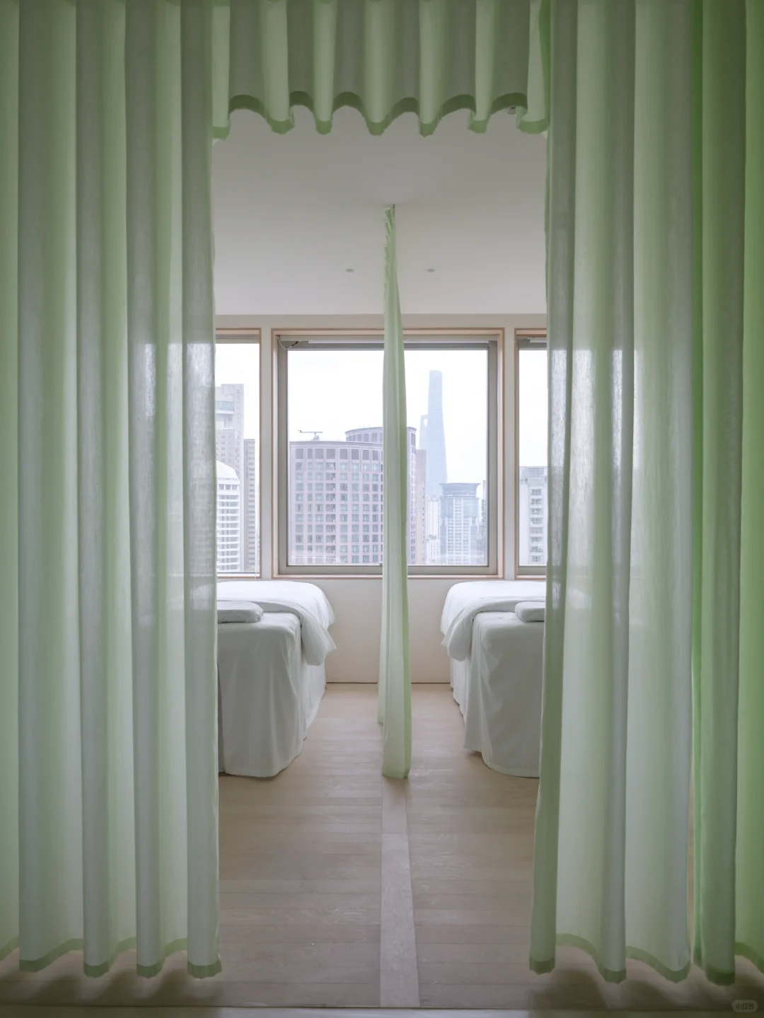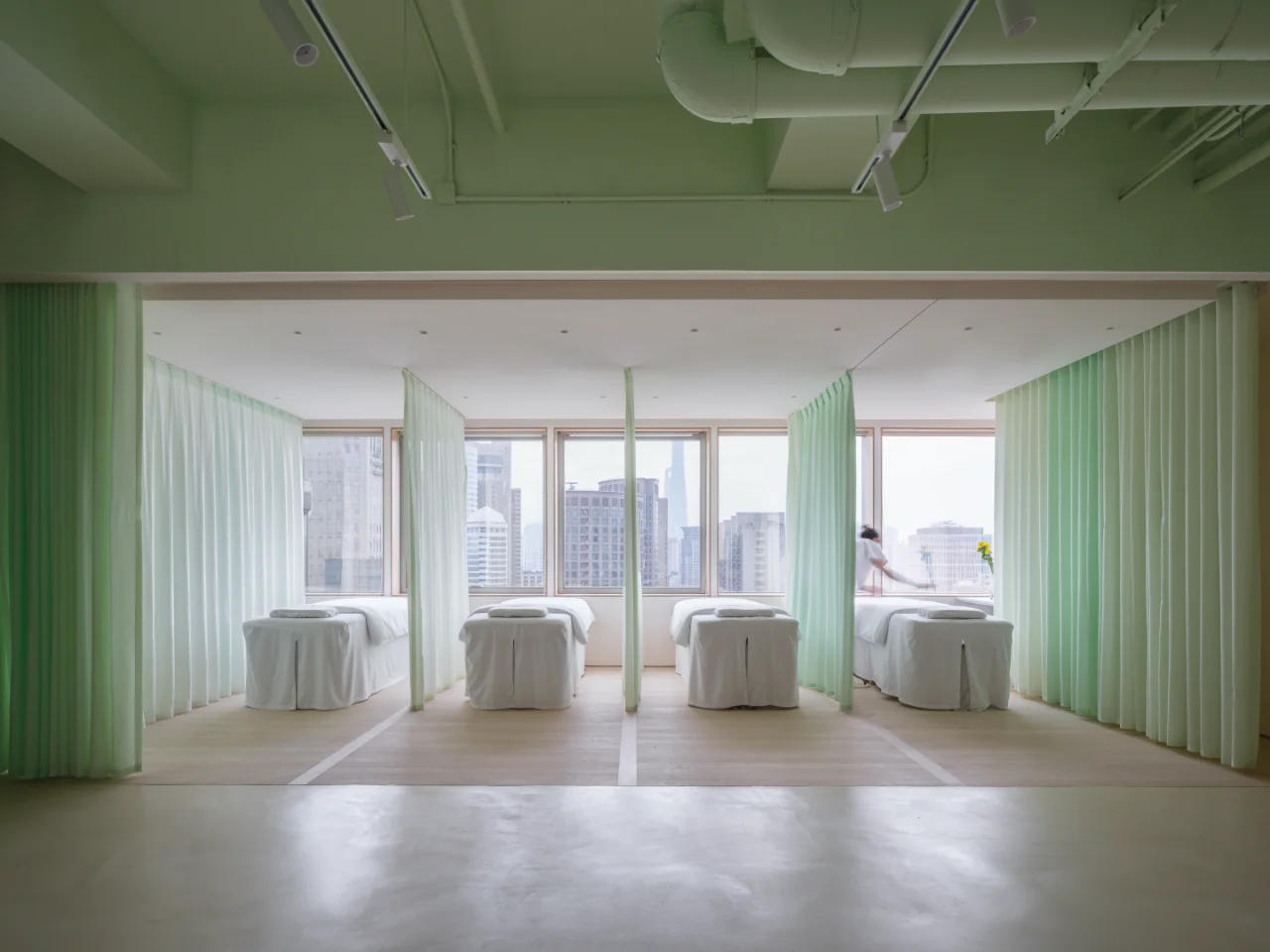 本次项目位于上海新天地繁华的商业区。设计打破了传统美业空间一味追求的标准化和华丽繁复,营造出兼具“诊疗室的专业性”和“美学生活馆的舒适性”的空间氛围。以清新的薄荷绿奠定基调,传递出品牌自身主打的洁净护肤理念。