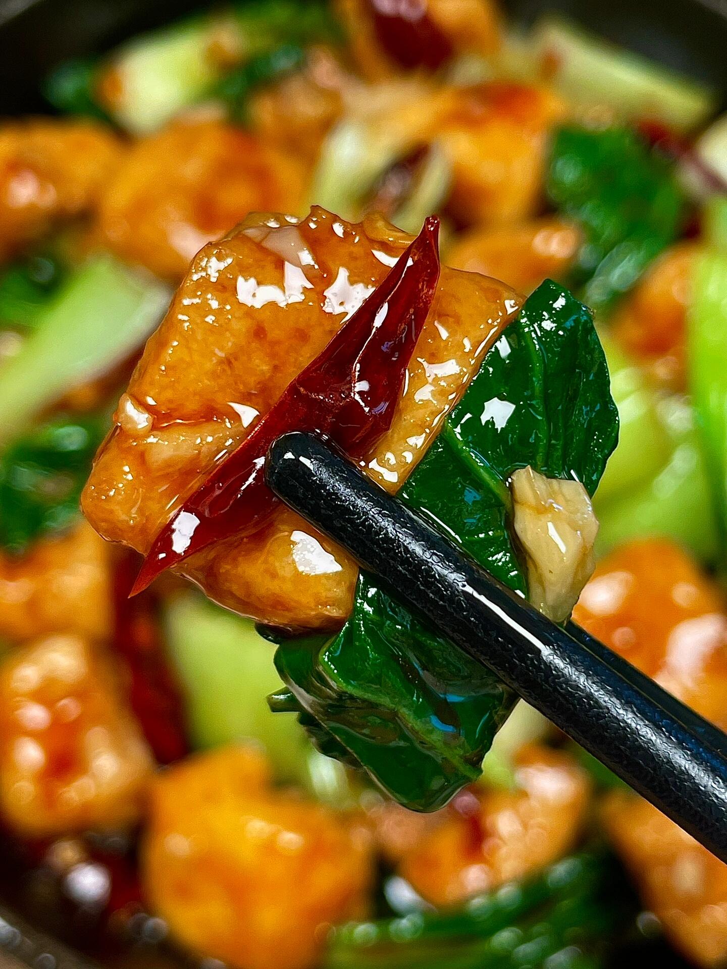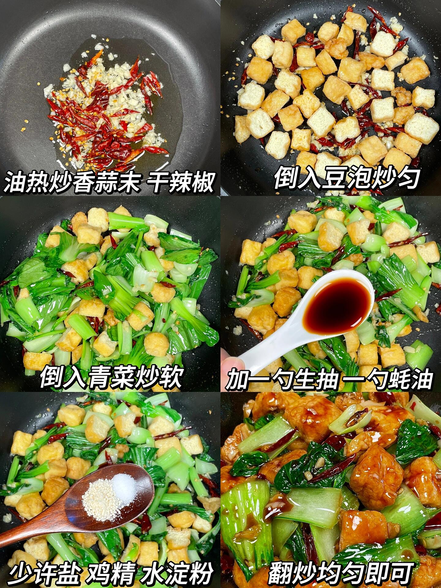 巨巨巨…巨好吃,求你们去做!! 豆泡吸满汤汁,鲜香入味,青菜脆嫩爽口,香香辣辣的,配米饭能炫两大碗!做法简单,快去安排起来吧 食材:豆泡➕青椒➕蒜末➕干辣椒