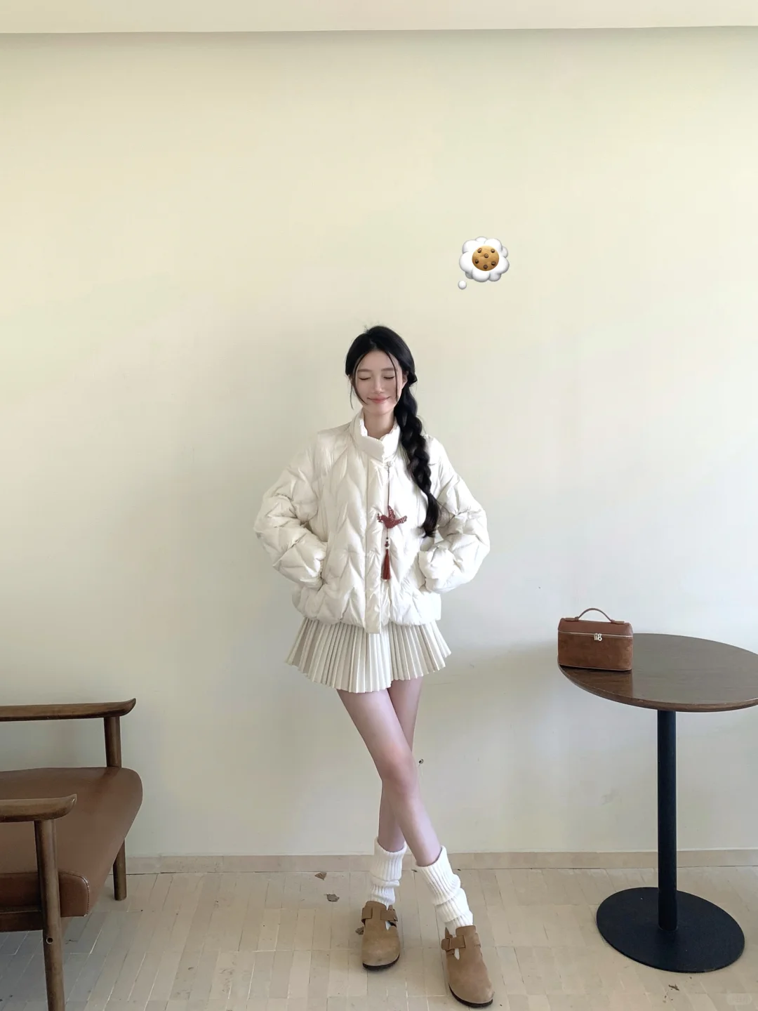已经准备好迎接冬天啦🫶🏻 新入的紫涵羽绒服, 奶fufu的颜色好温柔 包裹感像云朵般柔软☁️ 轻巧保暖还好看~ 爱上新中式的氛围感💕