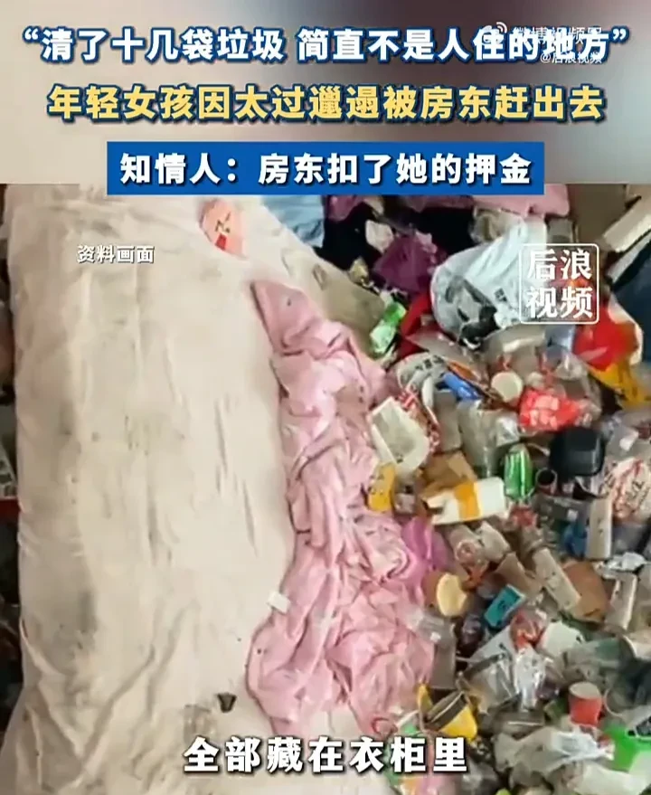 11月6日,湖南长沙一位房东发视频称,一名女生租房住了一段时间,却从来不整理垃圾,导致房间充满恶臭,自己无奈停了她的水电,并扣了押金,同时请别人打扫房间,清了十几袋垃圾。