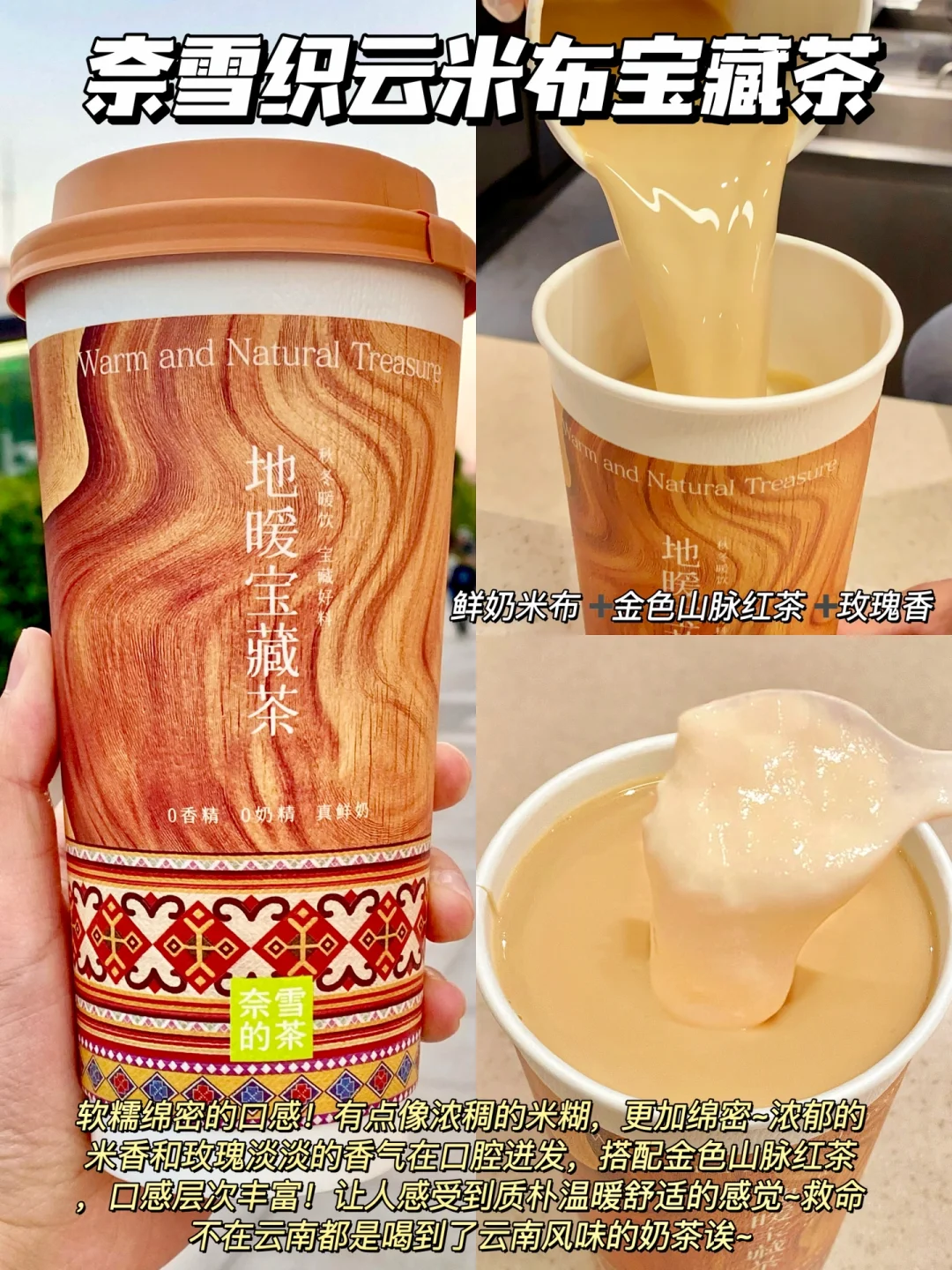 谁懂这种软糯绵密的口感!只有米粉和牛奶手工慢煮充分融合激发出食材本身的自然风味!有点像浓稠的米糊,但更加绵密~浓郁的米香和玫瑰淡淡的香气在口腔迸发,搭配金色山脉红茶,口感层次丰富!让人感受到质朴温暖舒适的感觉~救命不在云南都是喝到了云南风味的奶茶诶~