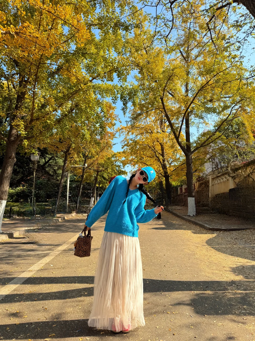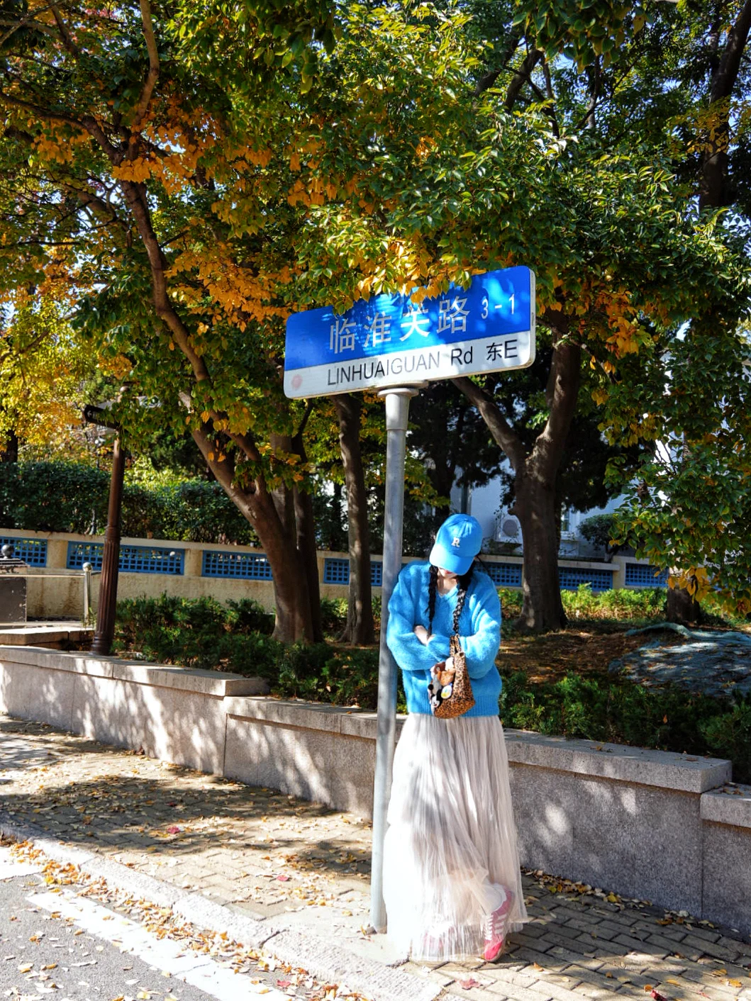 4️⃣函谷关路:人少 虽然右边有停车 但不影响拍两侧的梧桐树和满地的落叶