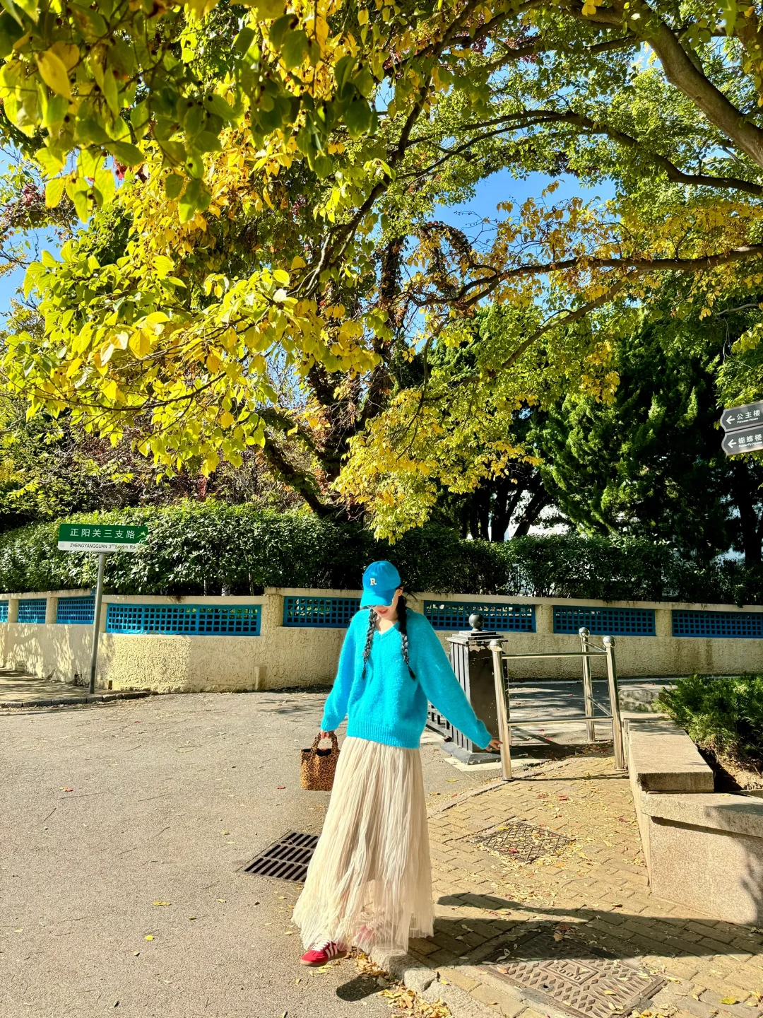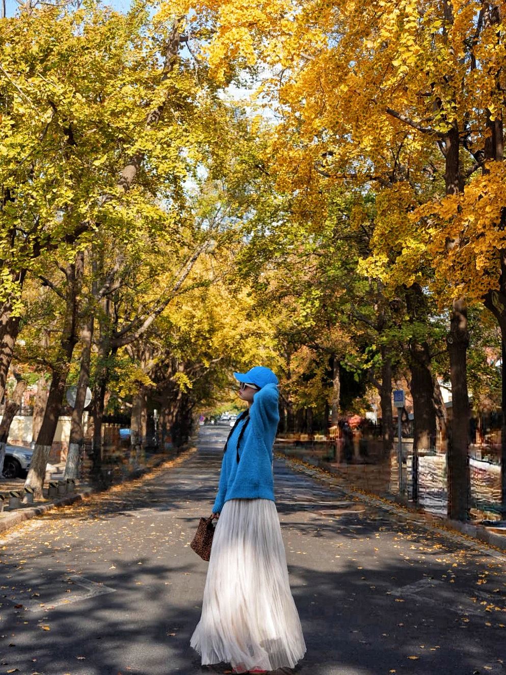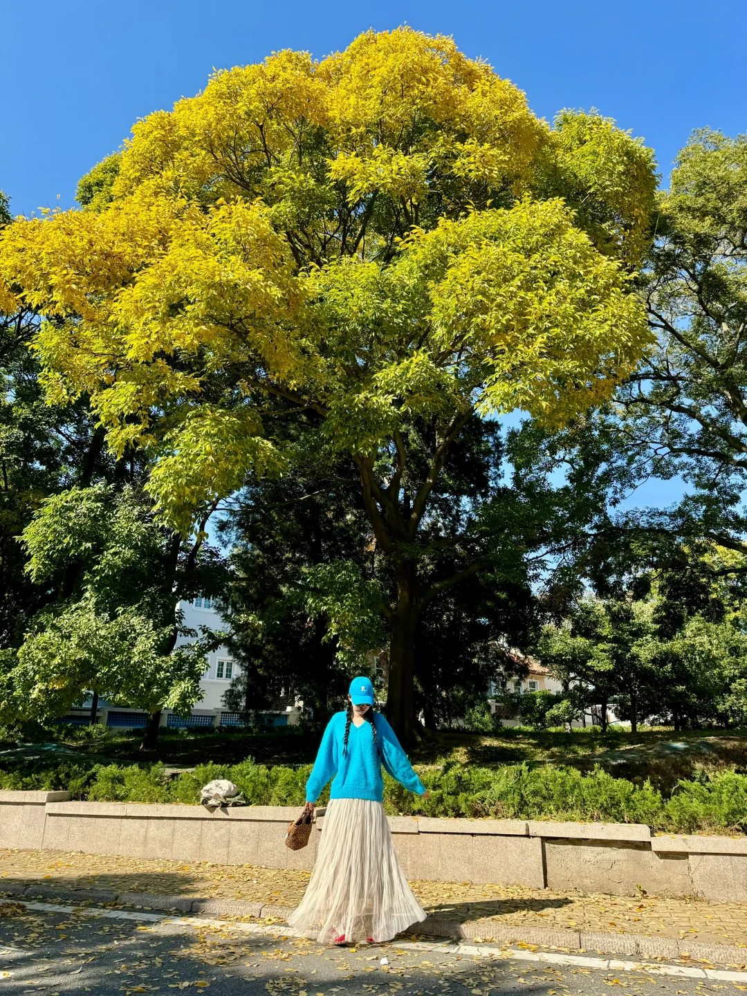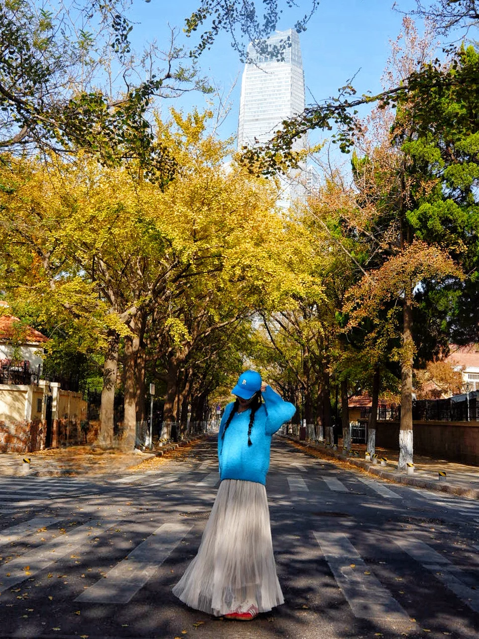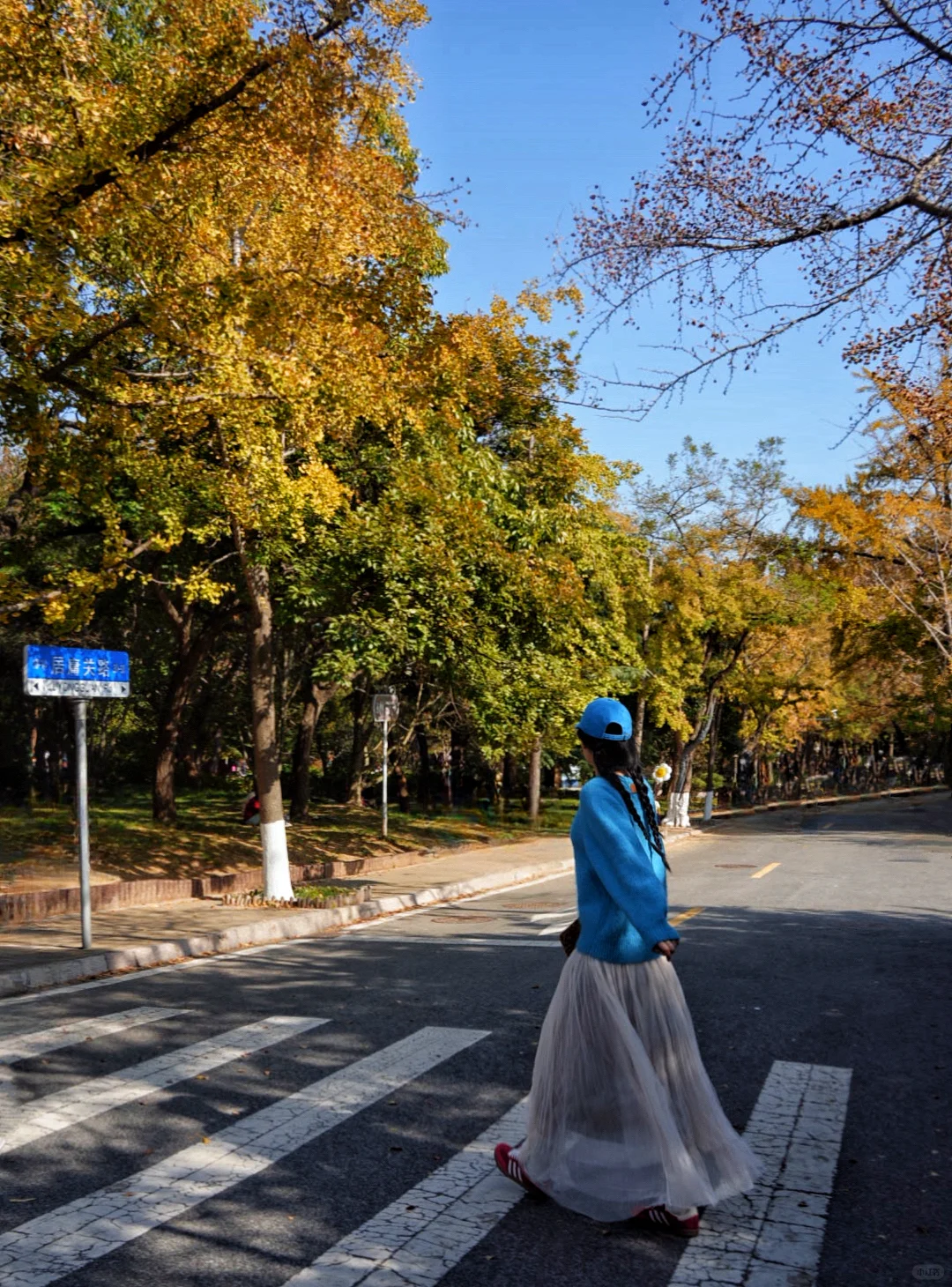 6️⃣居庸关路:公主楼附近银杏叶已黄了大半!但较稀疏 建议往“居庸关路与紫荆关路交叉口”方向走 两侧银杏树更茂密‼️