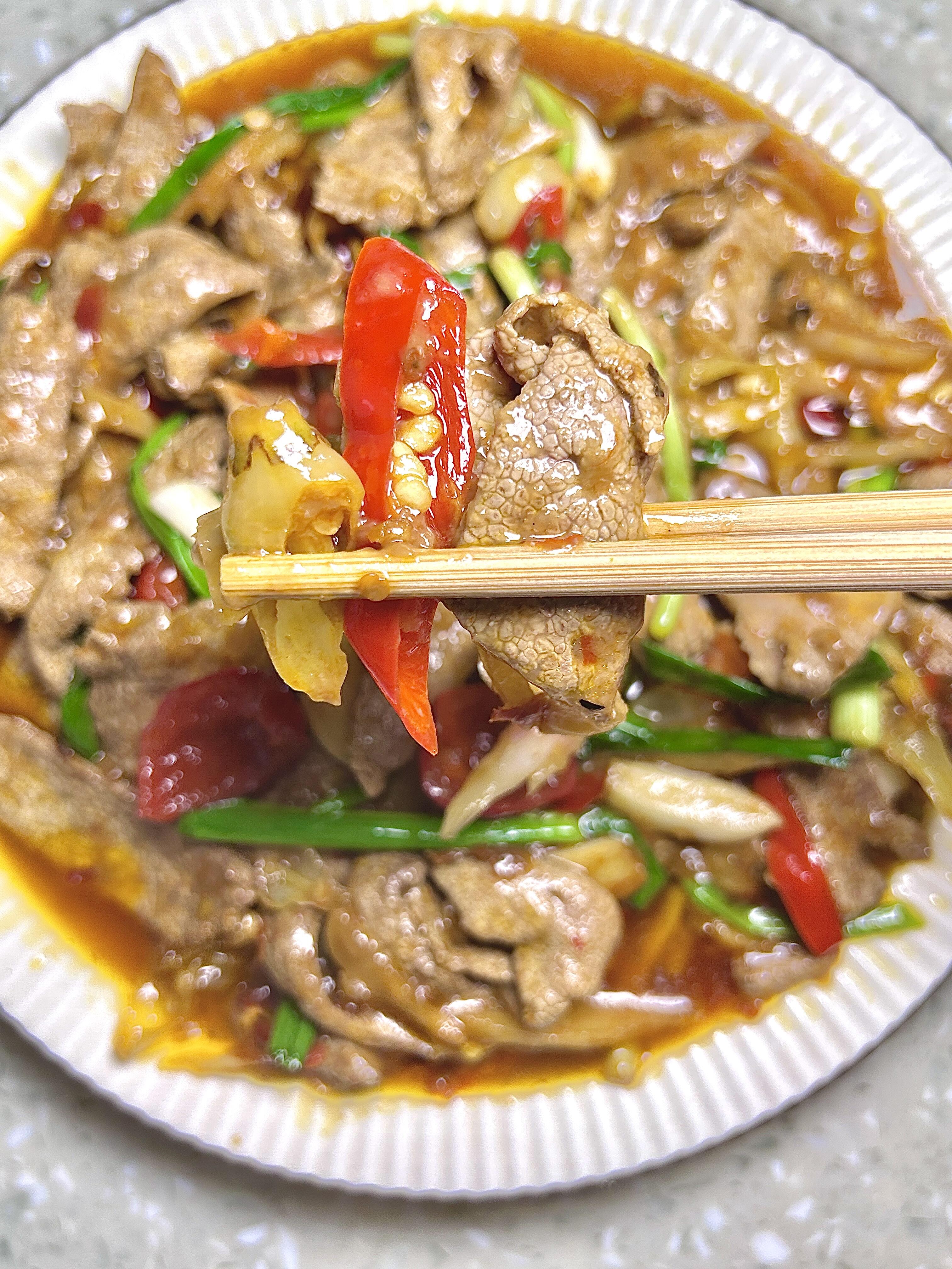 想告诉全世界,这玩意儿真的太太太好吃了! 不腥不柴的泡椒猪肝来啦,这样做直接吃两碗米饭,吃不完的猪肝留着第二天下面条也很好吃~ 食材准备:猪肝、泡椒、泡姜、大蒜、葱段 做法: 1、猪肝切薄片,用清水反复冲洗几次,这样可以更好的去处腥味,然后用厨房纸擦干水分,放入胡椒粉食盐腌制一会儿,然后倒入两勺淀粉抓匀,最后倒点食用油 2、泡椒泡姜都切碎,锅里可以多放一点油,然后油热后倒入猪肝快速翻炒30秒关火捞出来,锅里留入底油倒入泡姜泡椒蒜片炒出香味,再放入一勺豆瓣酱炒出红油,接着倒入猪肝翻炒均匀,最后撒上葱段即可。