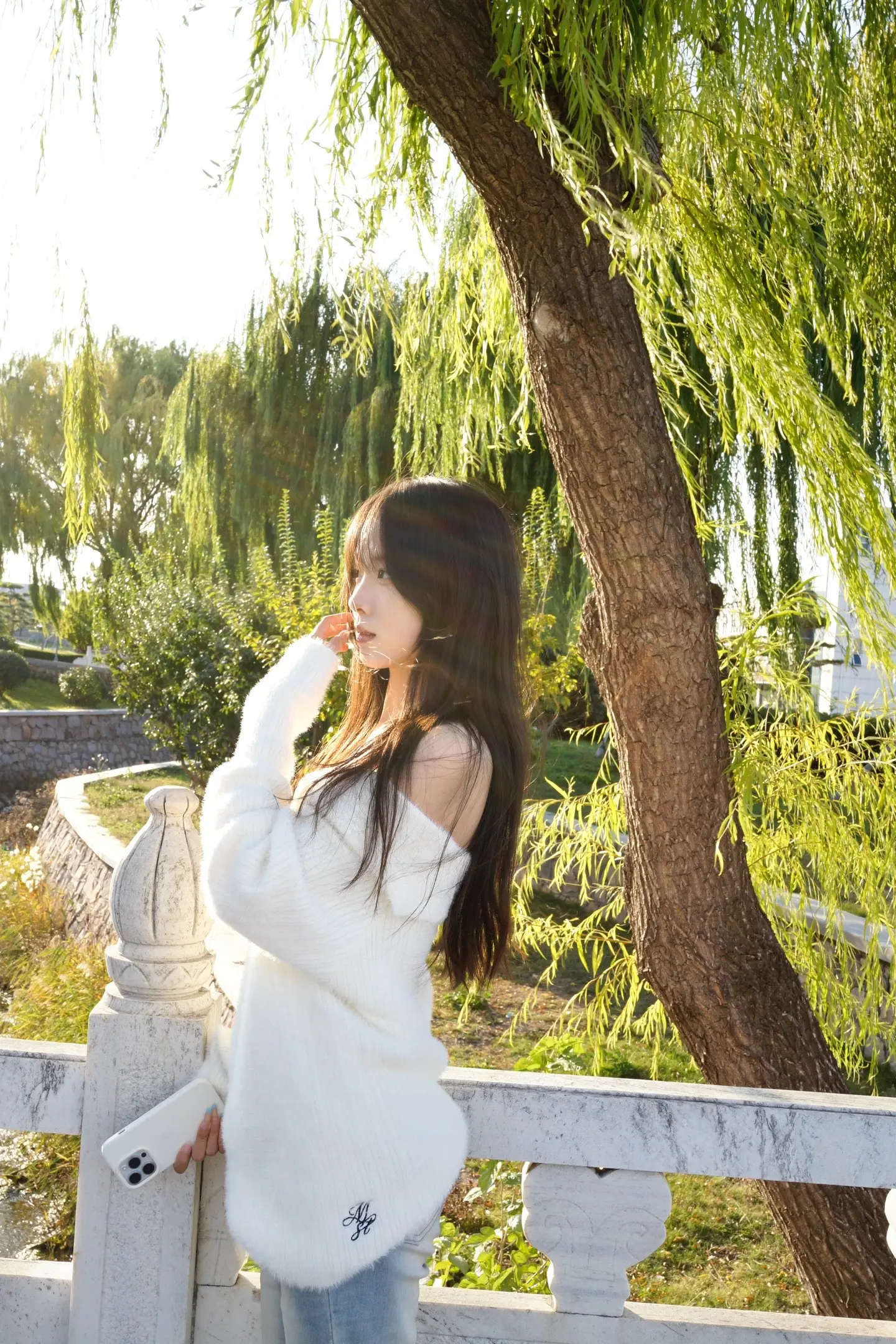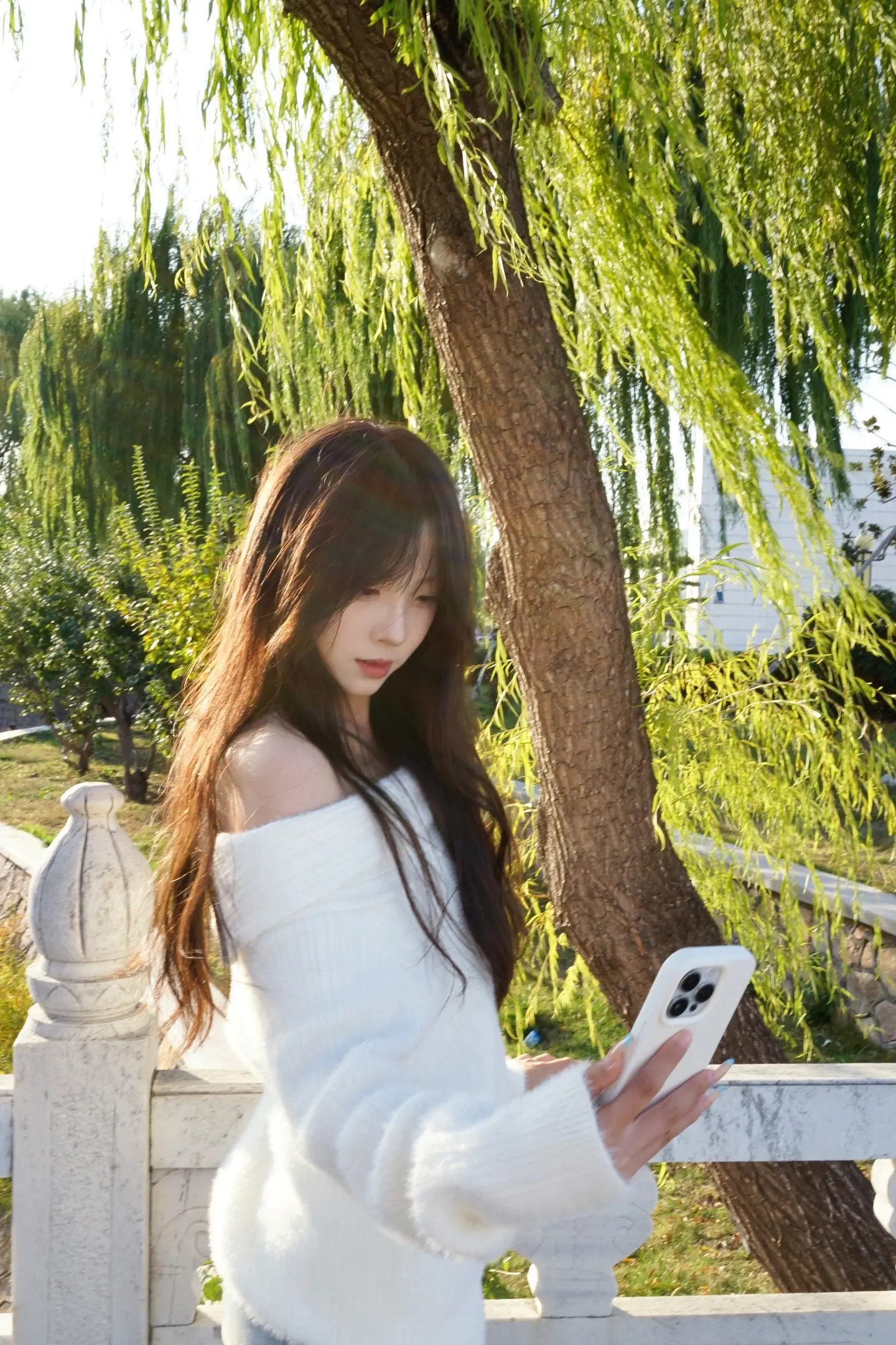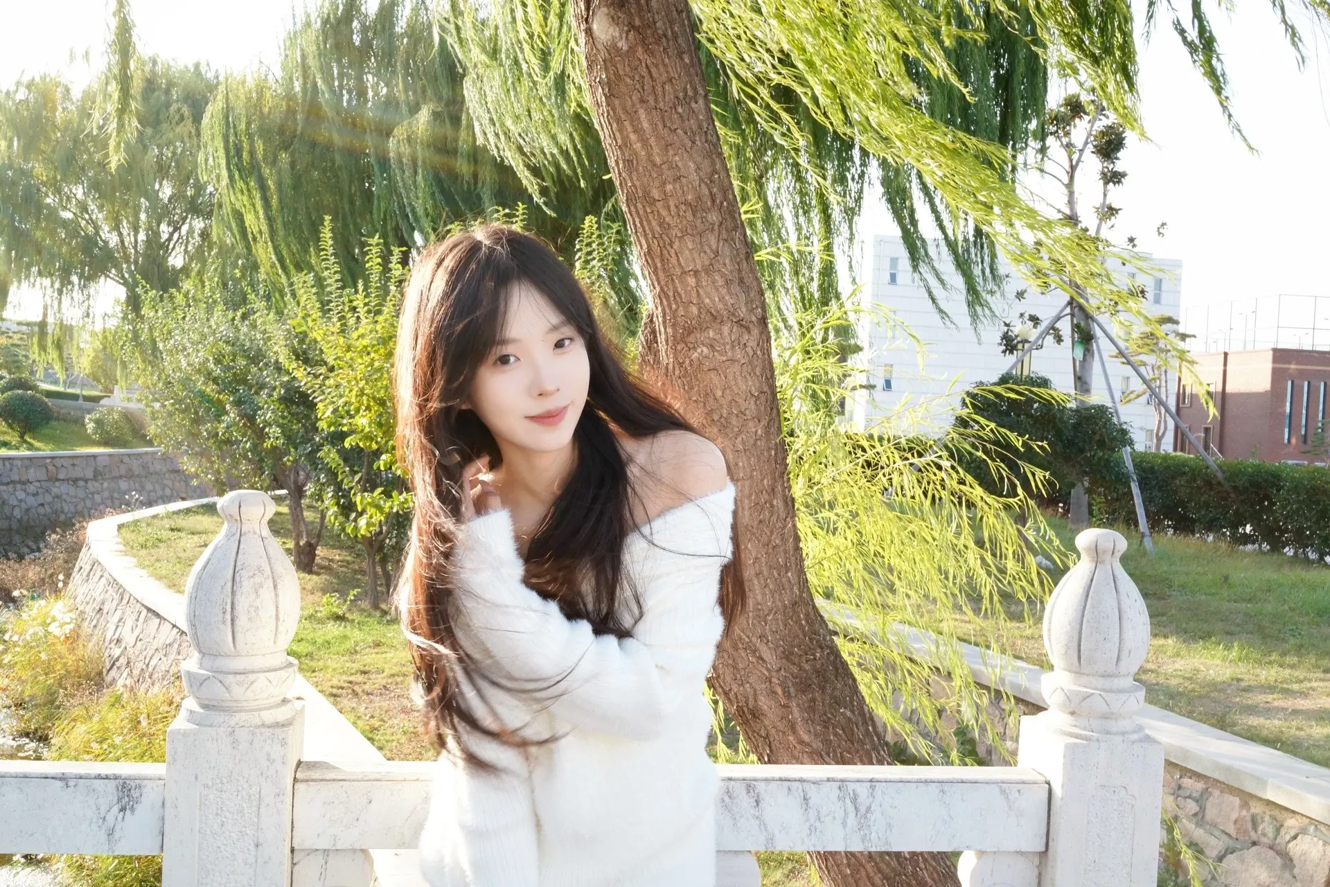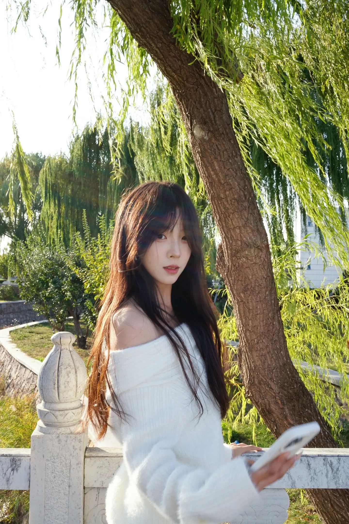 白衫是薄瓷的容器盛着心跳与呼吸绿裤是柔韧的藤缠裹着骨骼的倔强~柳丝拂