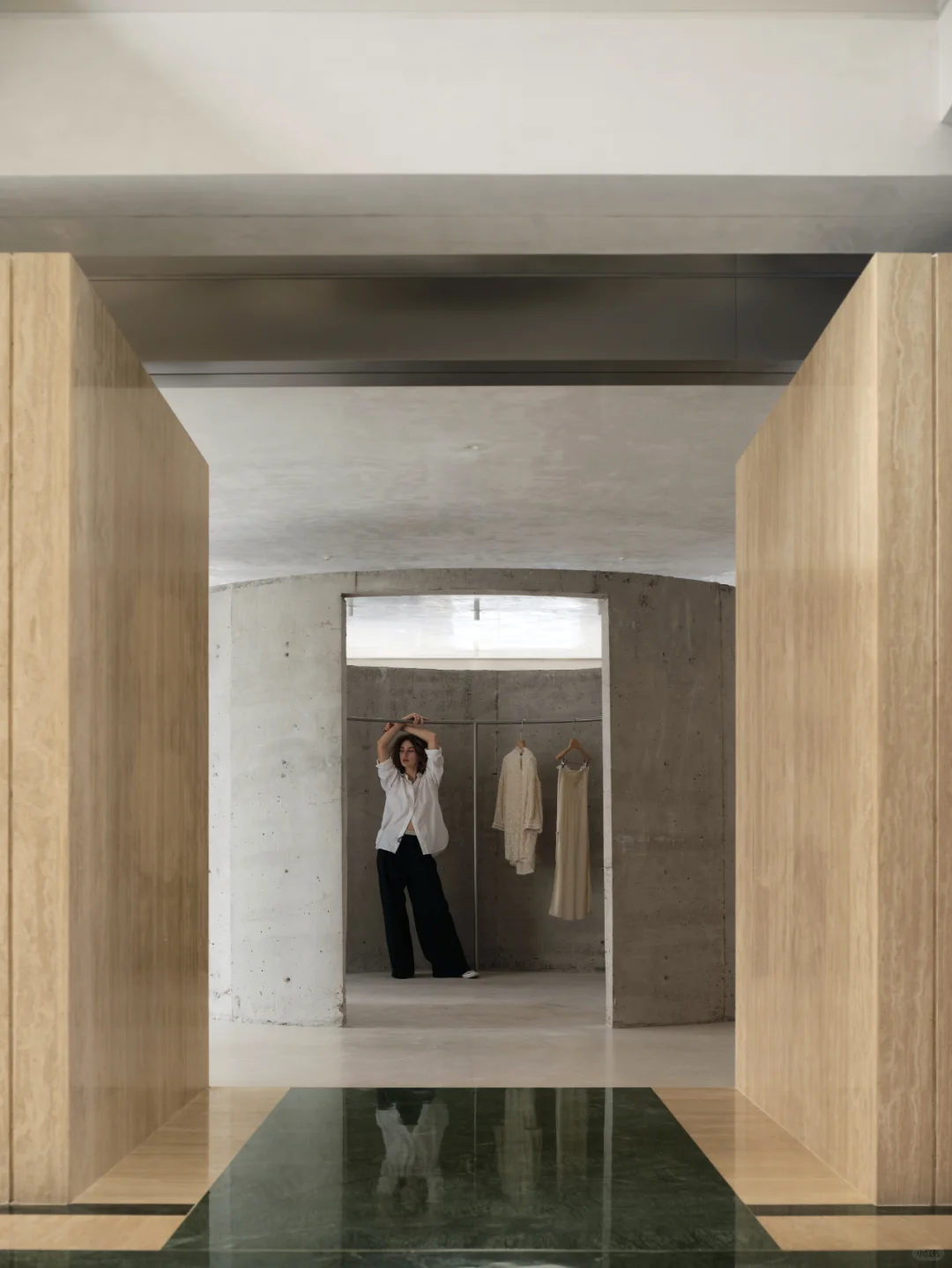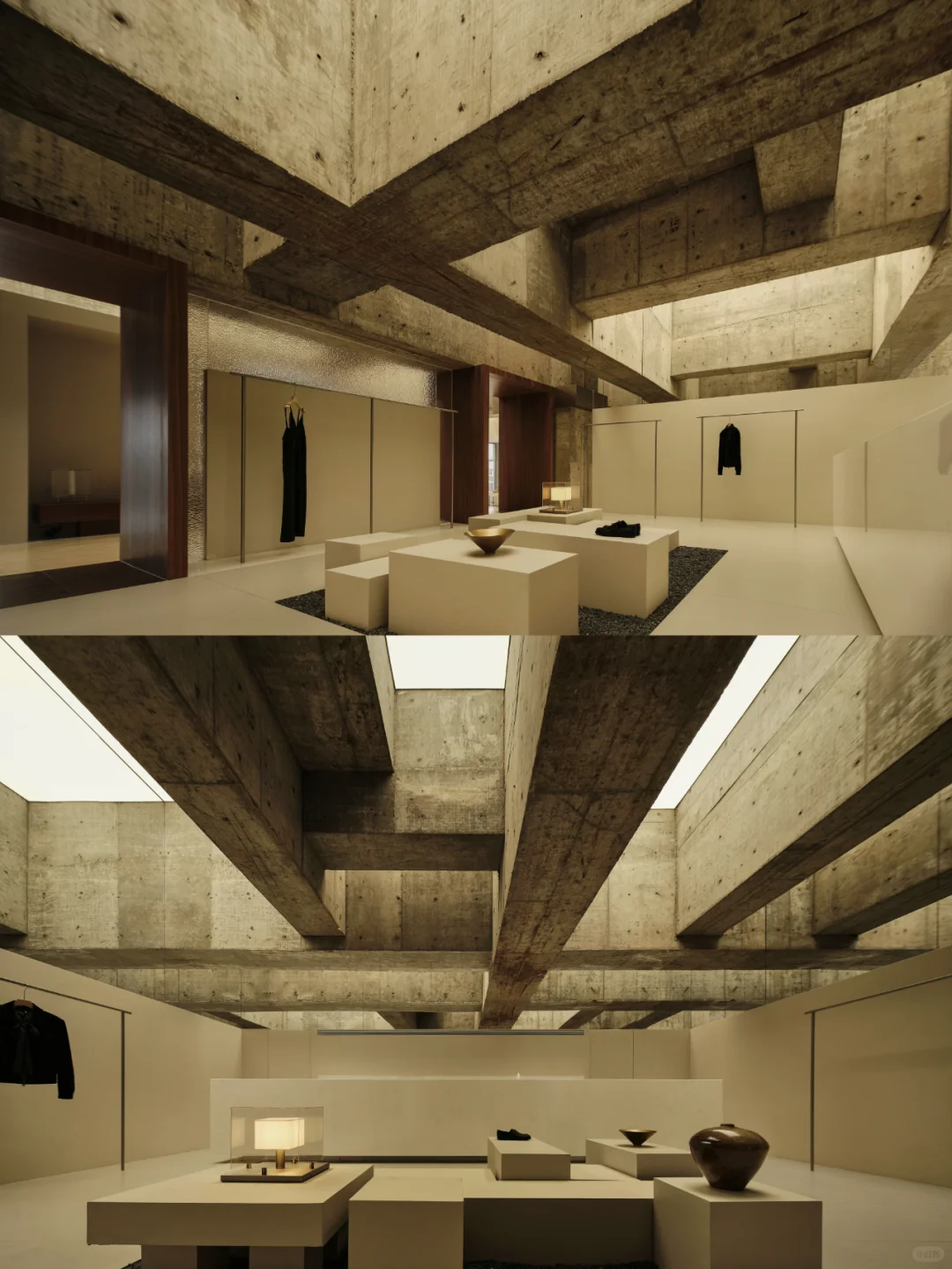 设计回归建筑手法的内在结构展现,平衡不同材质、色泽、肌理的张弛感,重塑与客群更深入且持续的情感链接,打造具有复合功能与内容力的品牌场域。