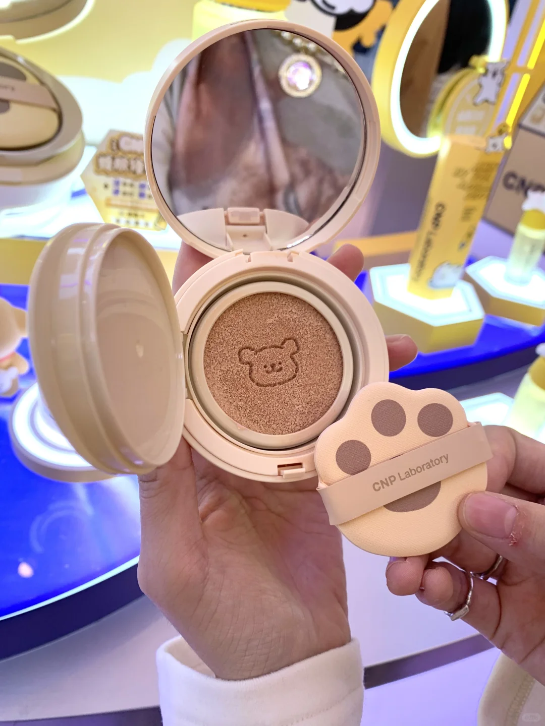之前还用过CNP的保湿喷雾很好用。这次去现场试用了一下CNP的蜂胶气垫,妆感很轻薄通透!是那种韩系水光肌的妆效。蜂胶精华质地很水润~熬夜修护力也很棒哦!