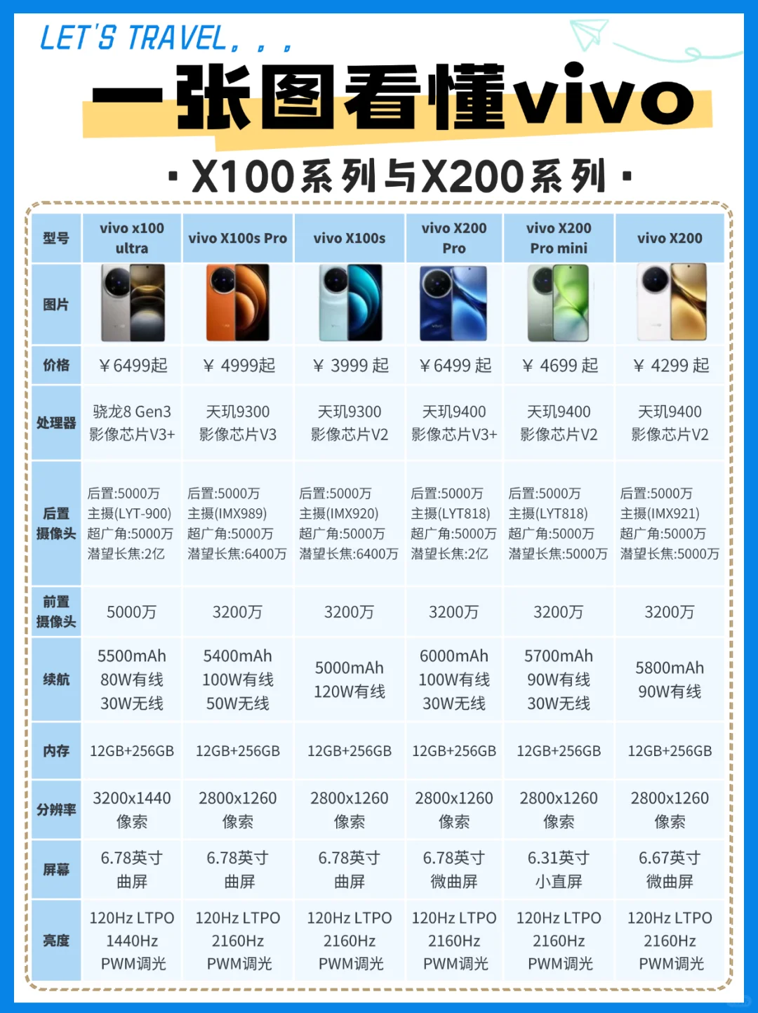 vivo X200赶在双十一前发布,而X100作为去年的奇旗舰系列,在双十一活动中肯定是会降价的,纠结买vivoX100u还是X200pro❓别急,我整理了一份详细的参数图大家可以参考下