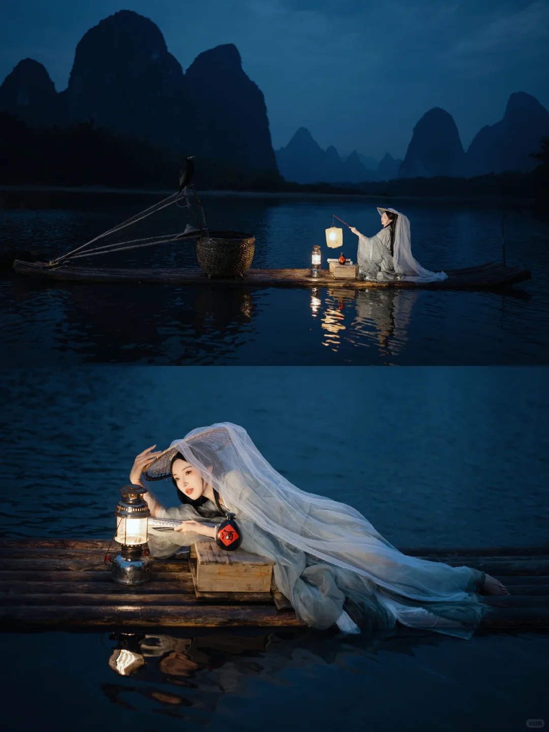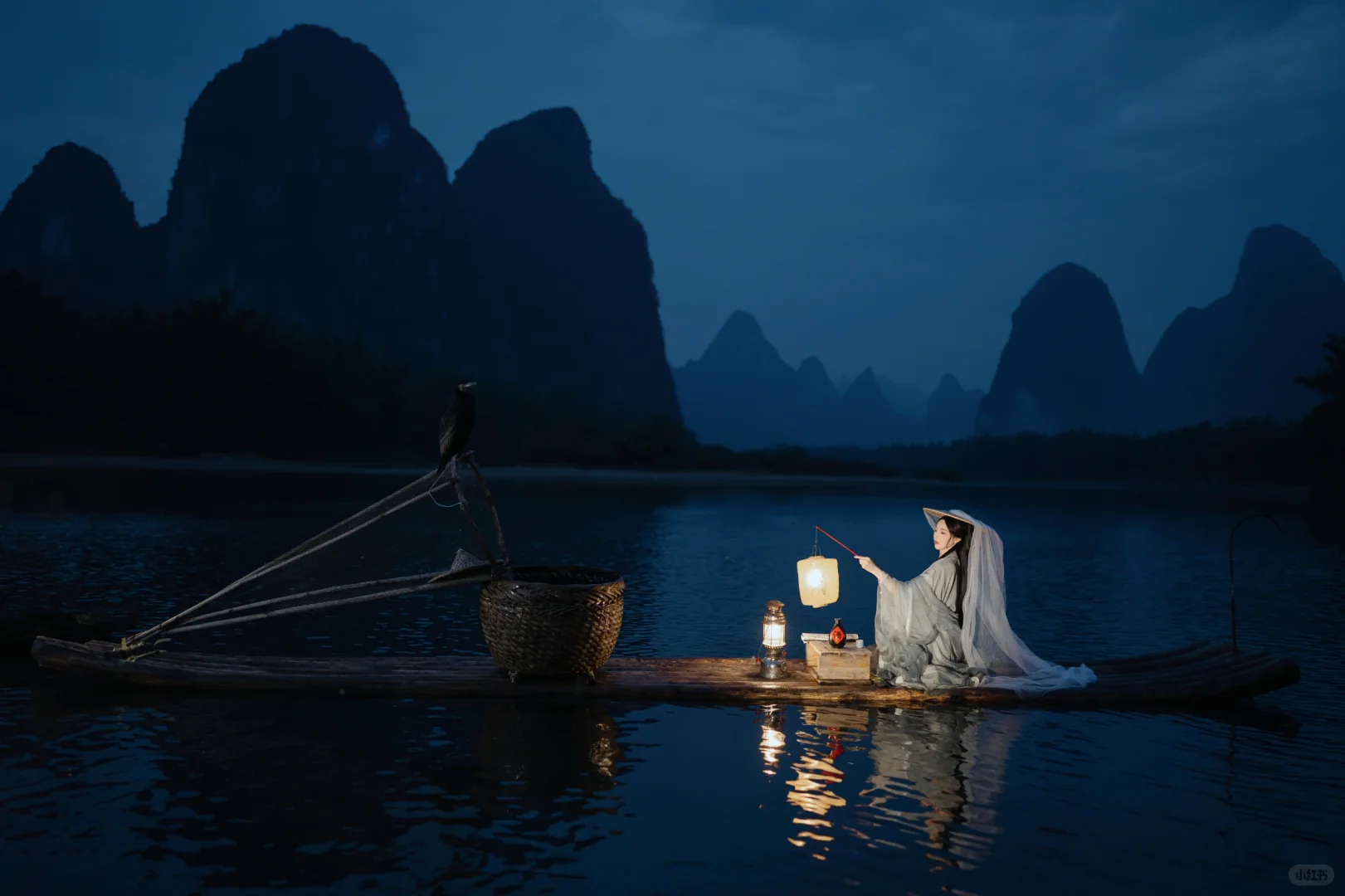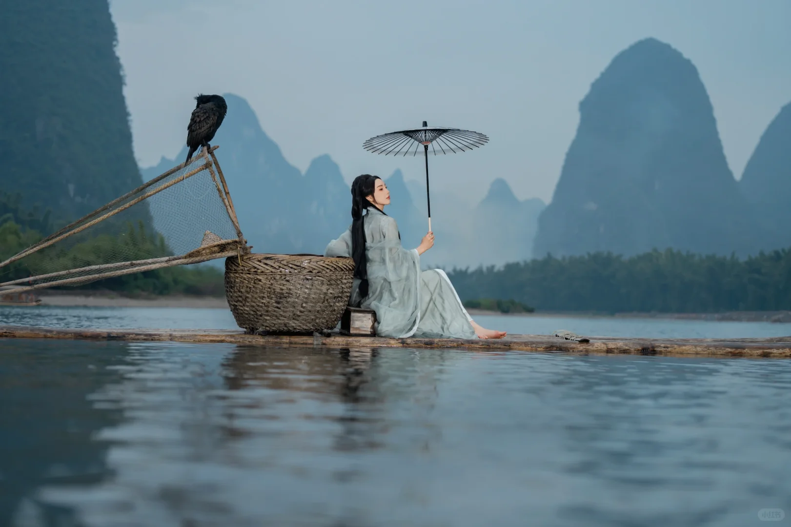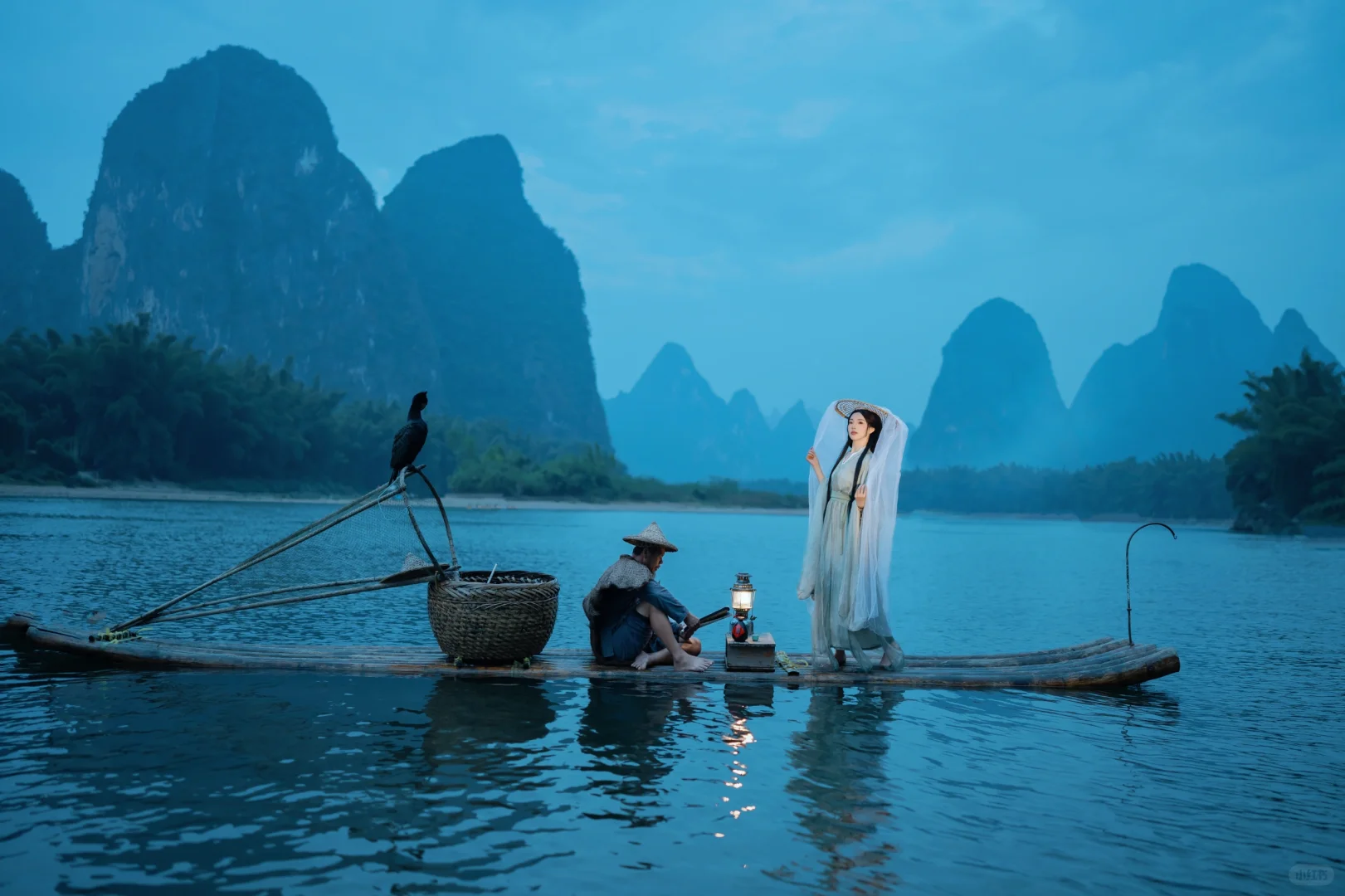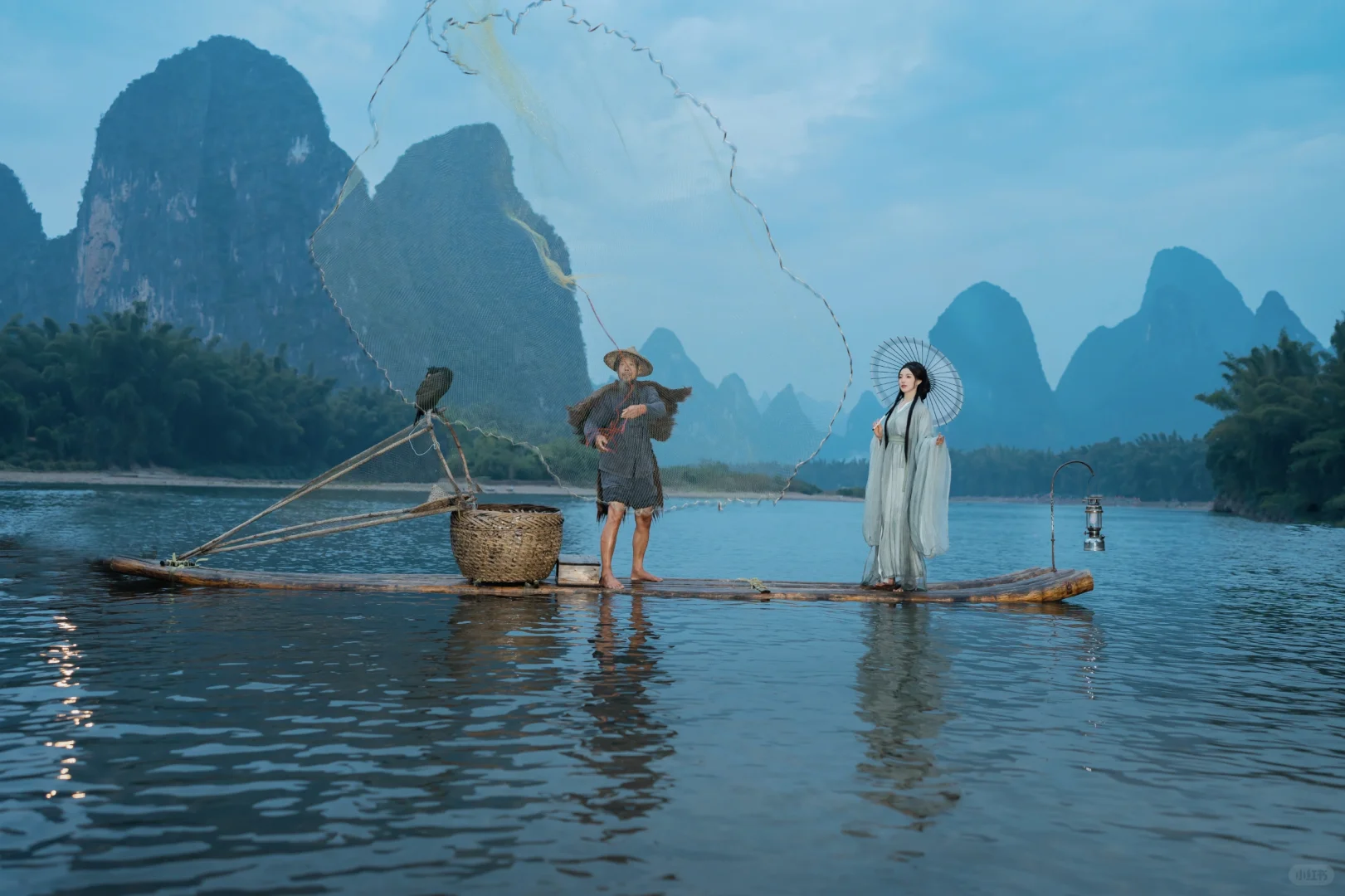 渔舟唱晚 写真分享 阳朔旅拍 汉服约拍 旅行记忆放映计划 一张照片高级感 约拍 拍出氛围感 渔舟唱晚 20元人民币背景