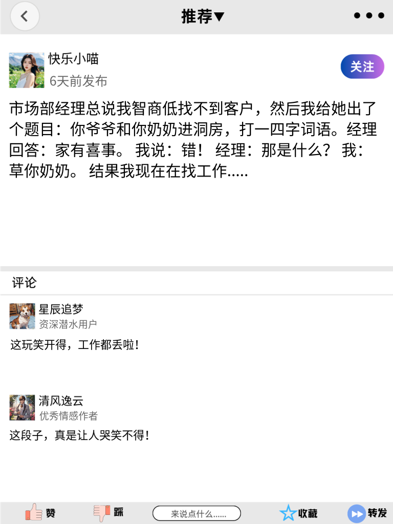 欢乐不打烊,段子来袭,让你笑出腹肌!