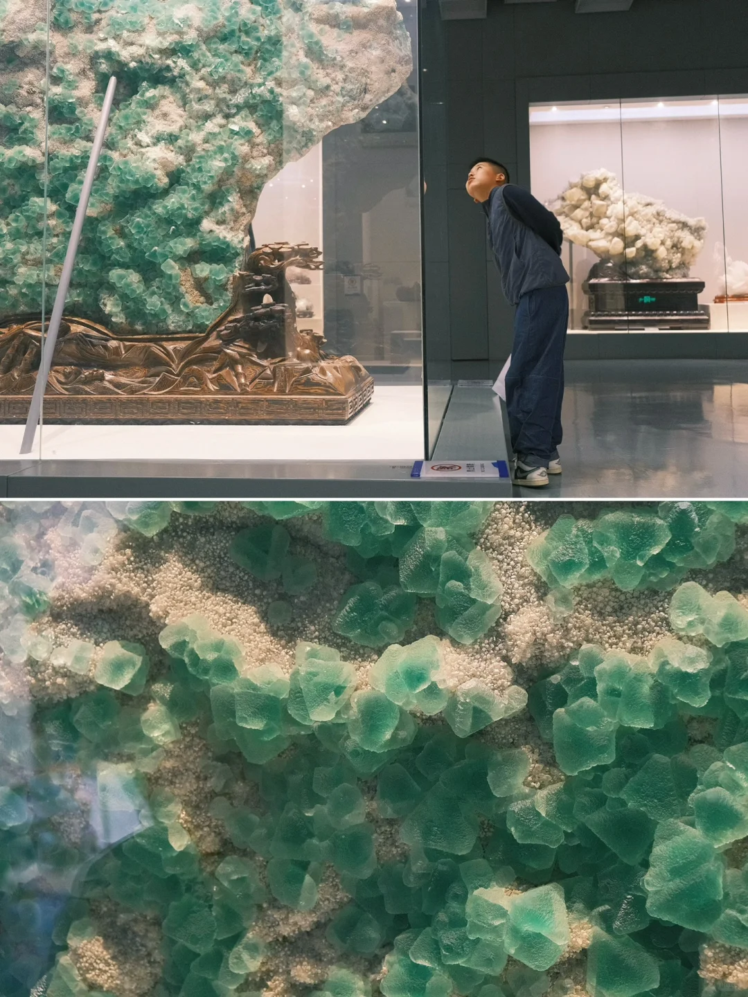 内容:分为矿物学基本知识、常见矿物、宝玉石、观赏石等多个展区。国内最大的萤石晶体集合体标本,稀有的含黄铁矿冰洲石等都在这里。