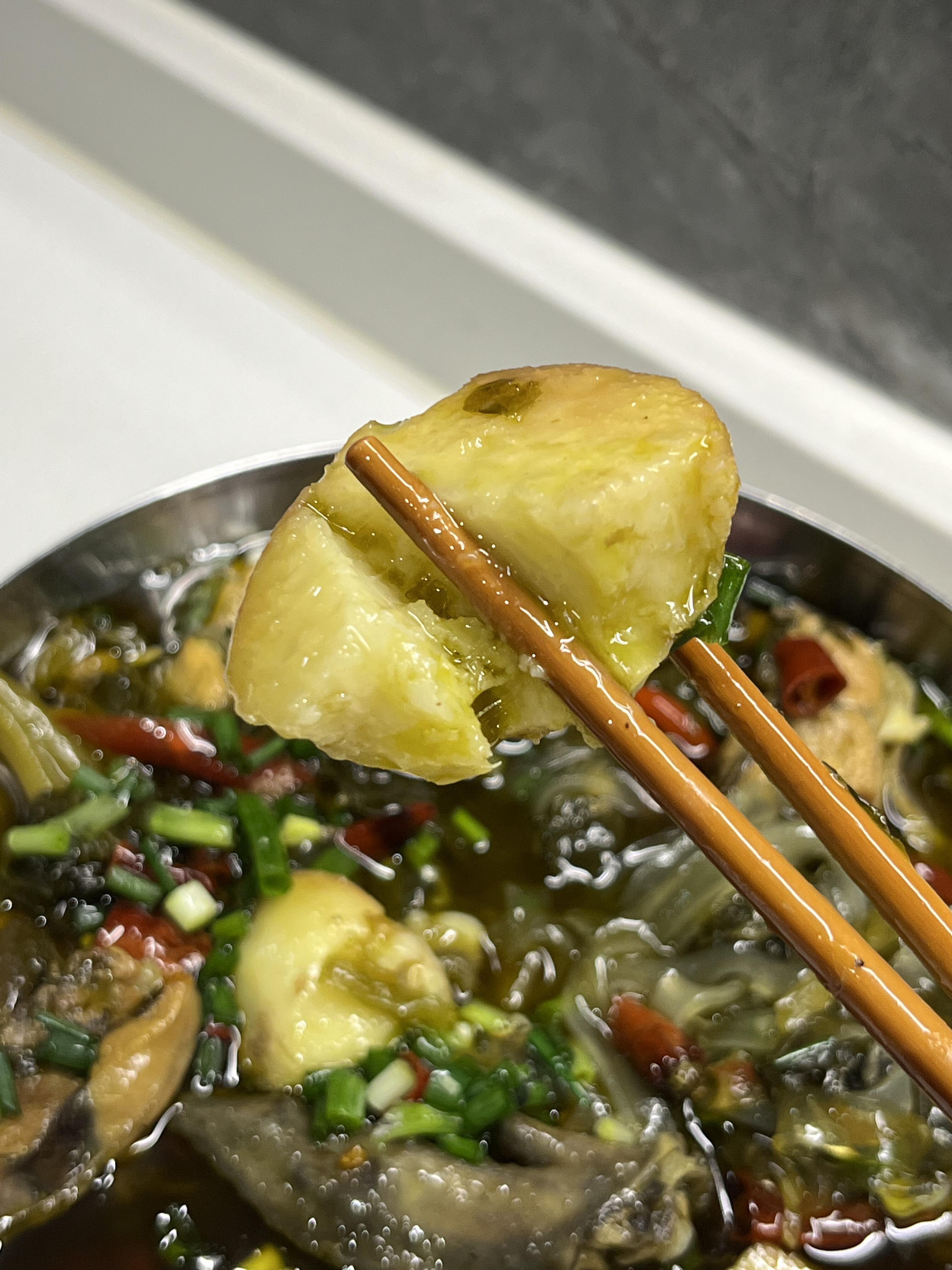酸菜芋儿鸡也太好吃啦!(附教程) 超好吃的酸菜芋儿鸡 粉条也超级入味 用这个汤汁来煮面煮米线也绝了!酸菜的香味完全出来了[色色R] 一定要试试! 1、芋儿用油煎至微焦捞出备用 2、油热(加点猪油更香)放入洗净的鸡肉 炒干水分 加入花椒 姜片炒香 再放入大蒜 大葱段 泡椒炒出香味 加入酸菜翻炒几分钟 加入适量清水 电压力锅压30分钟(我这个是土鸡比较难煮软 用鸡腿肉或者仔鸡的话 直接加开水炖20分钟左右) 3、转移到锅中 放入芋儿 加少许生抽调味 煮10分钟左右 再放入泡软的粉条煮3分钟 起锅前加味精和白胡椒粉 4、油热放入干辣椒爆香 淋到芋儿鸡上 加上葱花即可