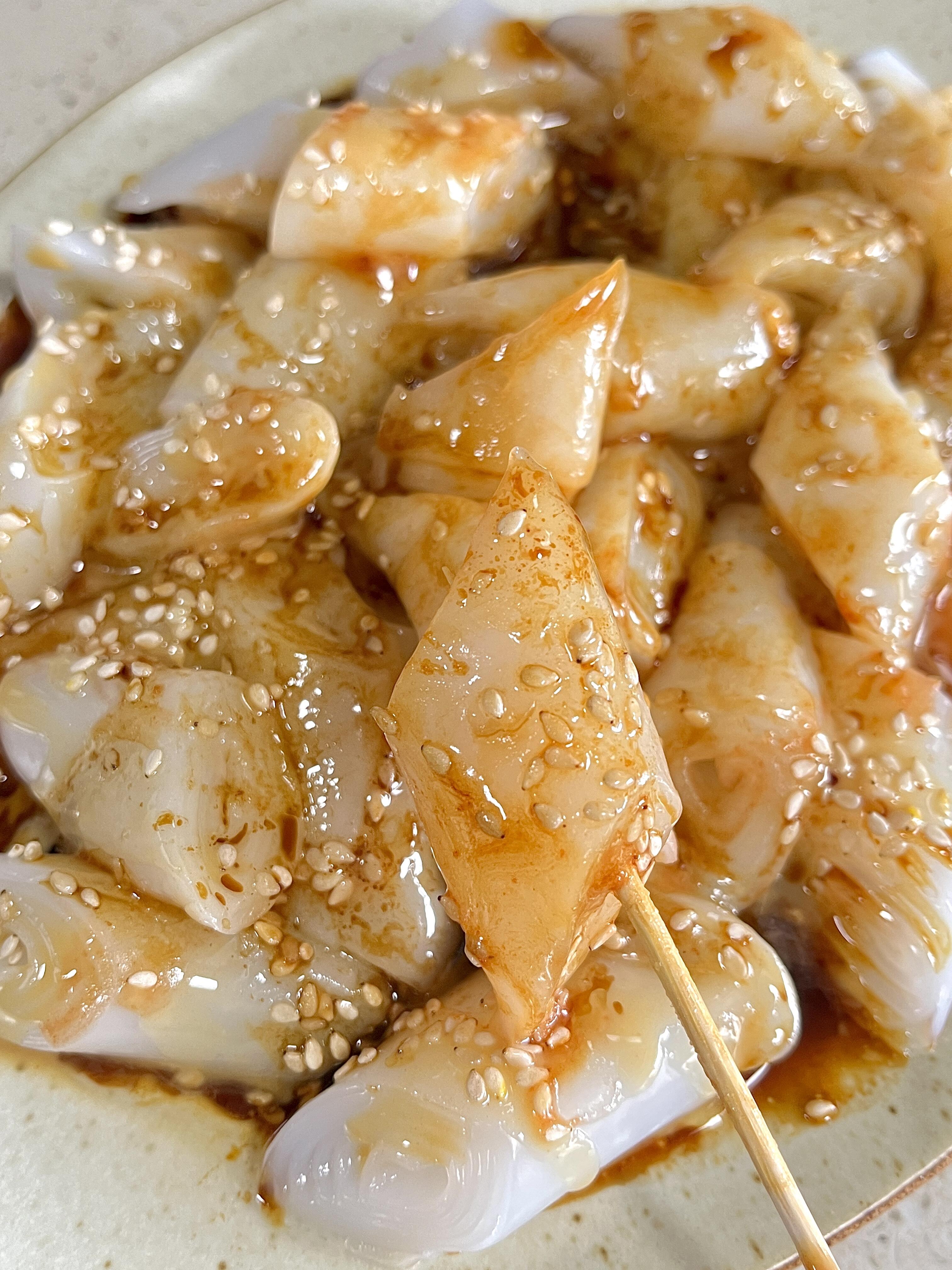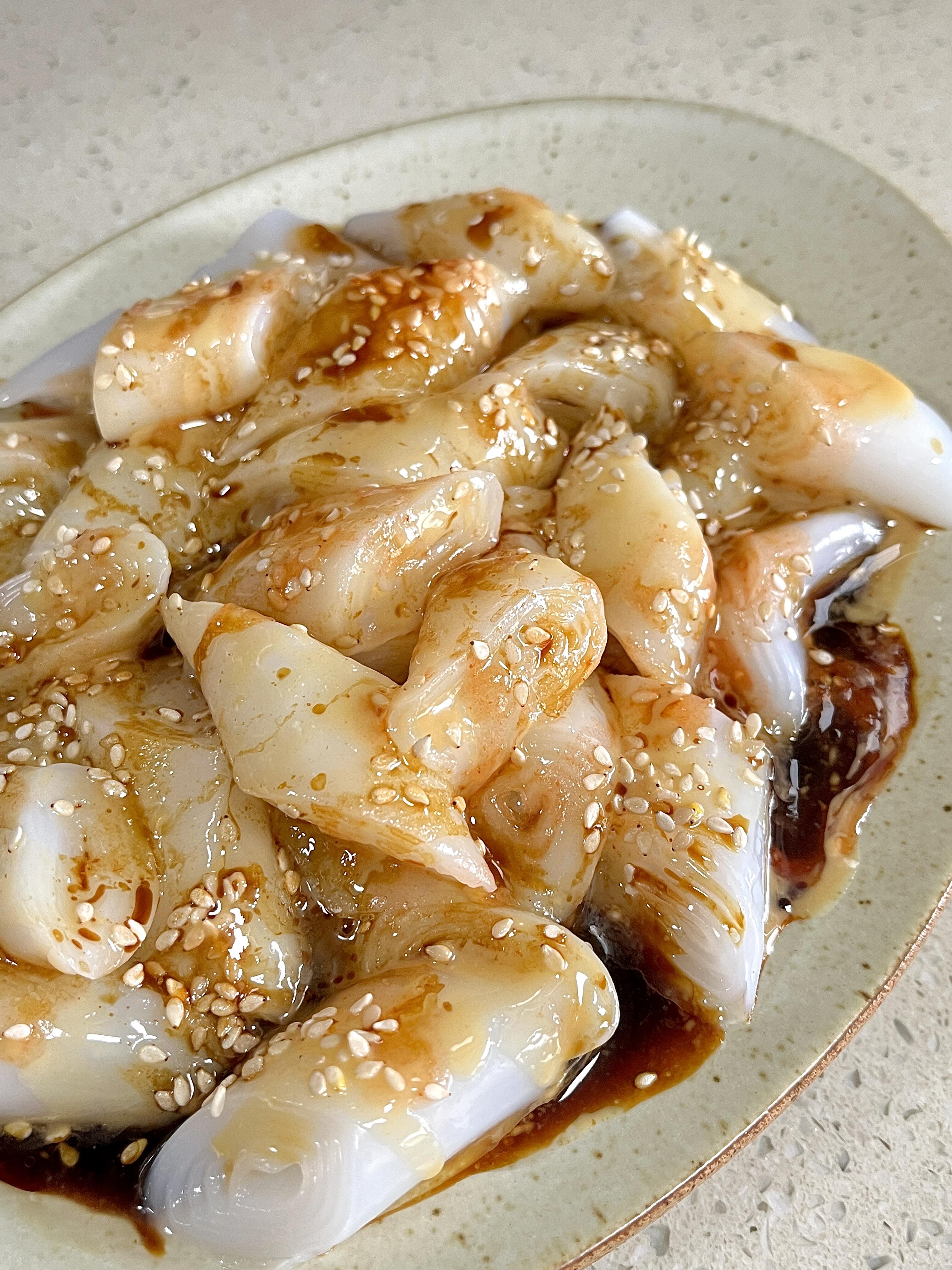 每次去茶餐厅必点的混酱猪肠粉,今天在家安排上了 每一口都裹满了酱汁,一口下去巨满足,我家小朋友超爱吃 食材:猪肠粉、番茄酱、花生酱、芝麻酱、芝麻油、芝麻、白糖 做法: 1、猪肠粉斜着剪成小块,水开上锅蒸5分钟 2、碗中放入花生酱、芝麻酱、芝麻油拌匀 3、碗中放入番茄酱、少许清水、白糖拌匀 4、碗中放入酱油、老抽、蚝油、白糖、花生油拌匀 5、三种酱汁依次淋入蒸好的猪肠粉,撒上芝麻