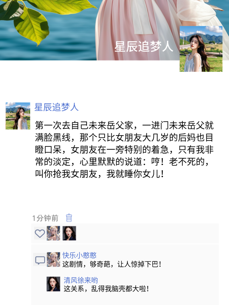 亲眼看着自己老婆在公园跟别的男人搂搂抱抱,那哥们儿没冲上去。就拍了张照片,发过