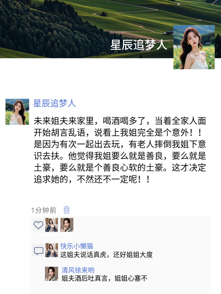 亲眼看着自己老婆在公园跟别的男人搂搂抱抱,那哥们儿没冲上去。就拍了张照片,发过