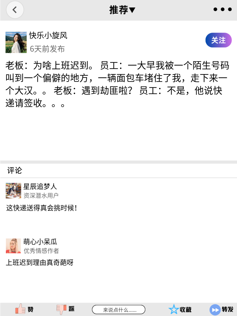 把日子过得像段子,把笑声打包成每日快递!