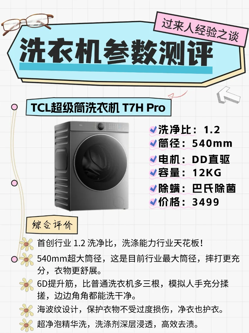 🔥TCL 超级筒洗衣机T7Hpro,这款洗衣机真的绝了!洗净比首创1.2,是行业天花板,实力说话!540mm筒径,衣物摔打空间和力度增大,厚衣物都能舒展开。💪6D提升筋设计,比普通的多3根,摔打揉搓两不误,细节处也不放过,再难搞的污渍也能KO!还有海波纹,可以保护衣物免受磨损 🛋 关键是价格超级亲民,质价比爆表,不心动都难啊!❤