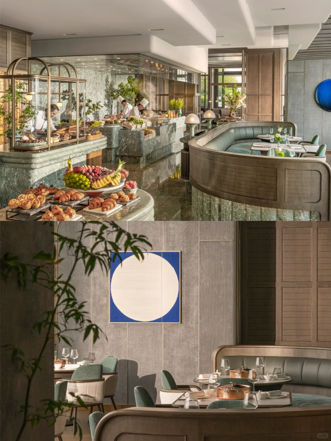 延续西湖的诗情画意,以木石为笔,以碧蓝为墨,全日餐厅「韵」绘就一幅西湖雅境,让宾客在品尝珍馐的同时,能沉浸于西湖的温柔怀抱。