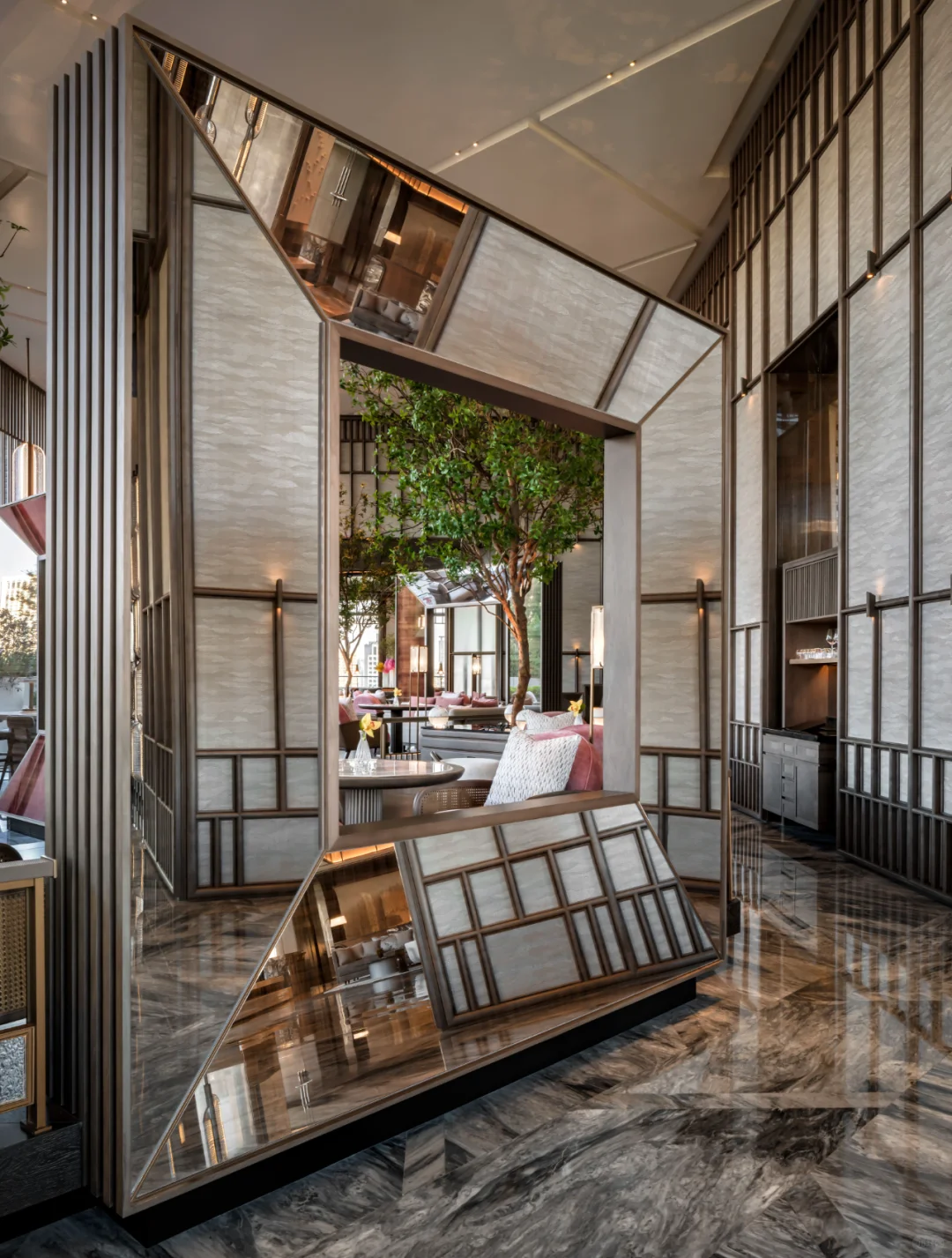 以航行在运河上的方舟为灵感,将踏入大堂酒廊「桂」的旅程,设计成一场丝绸之路上的奇幻航行,引领宾客探索杭州的历史底蕴。