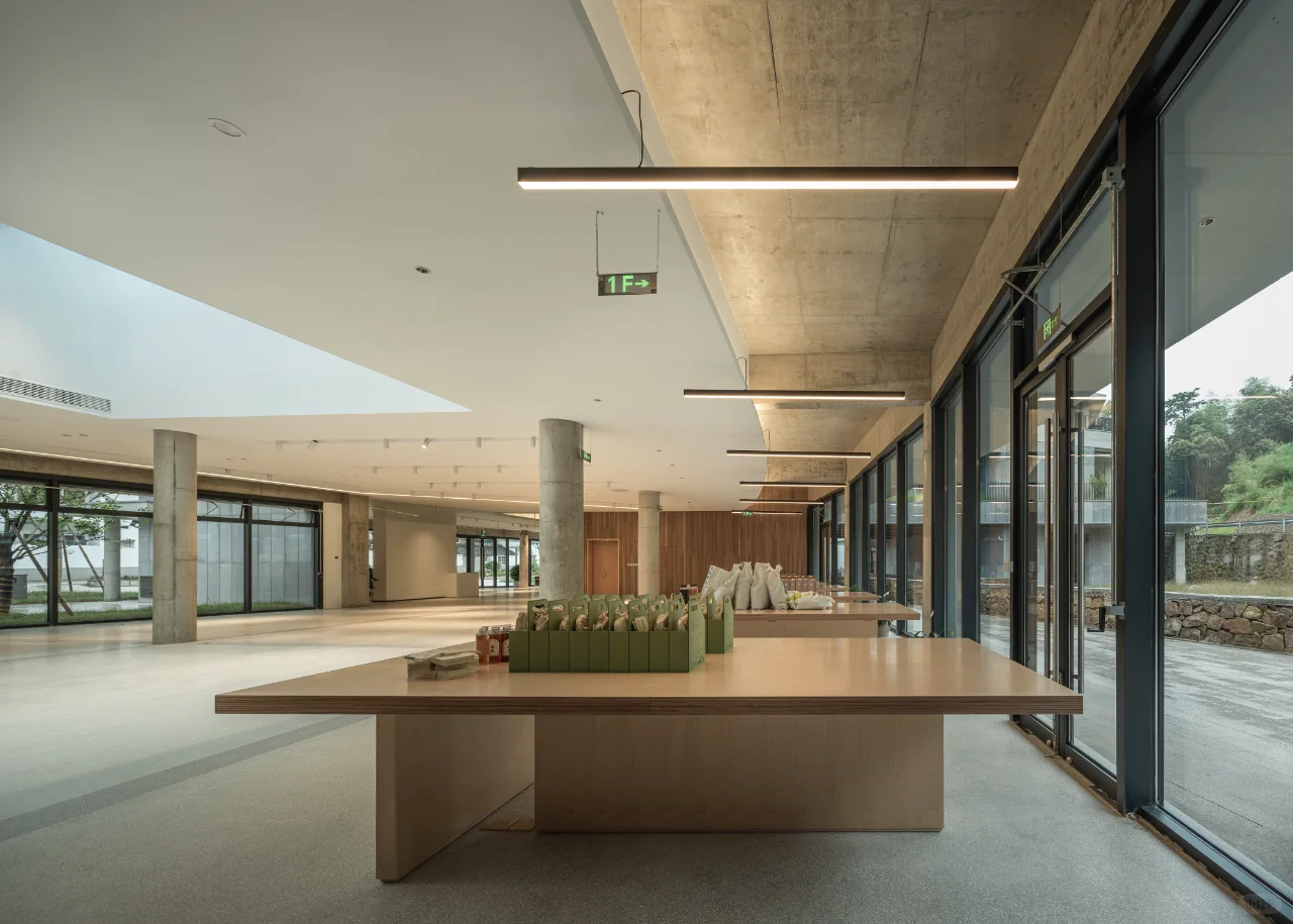学习中心不仅是环保教育基地,还承担游客服务、特色产品展示和社区活动等功能。灵活的室内空间可用于展览、研讨和聚会。天窗为大厅引入自然光,展览空间与结构布局相结合,支持多种活动形式。