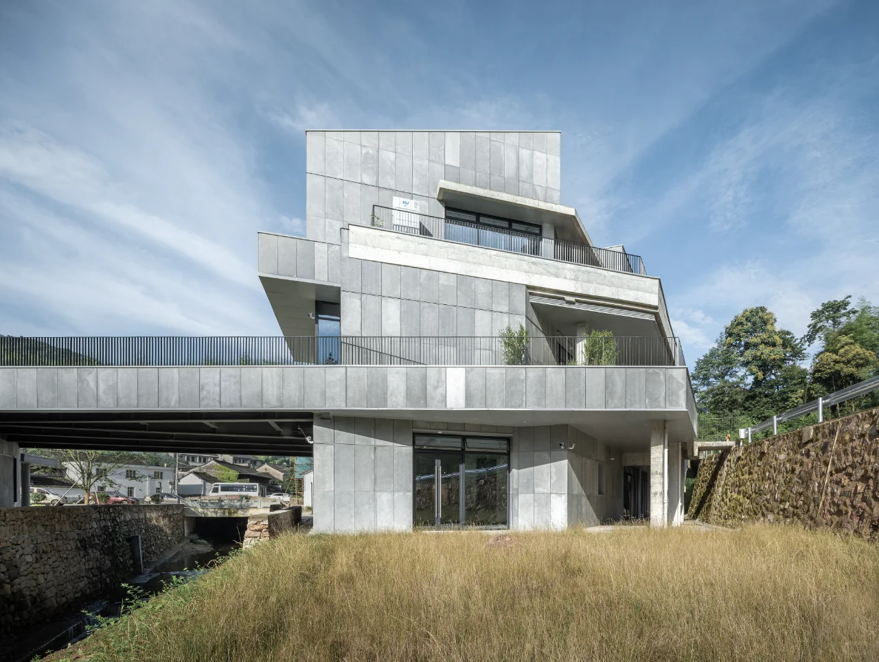 建筑与村庄景观相融合,设置了户外平台和步道,让游客在探索自然的同时学习环保知识。建筑采用退台式设计,贴合山体水系,并融入村庄道路系统,为村民提供日常使用的长廊、卫生间等设施,同时示范绿色建筑的低碳实践。