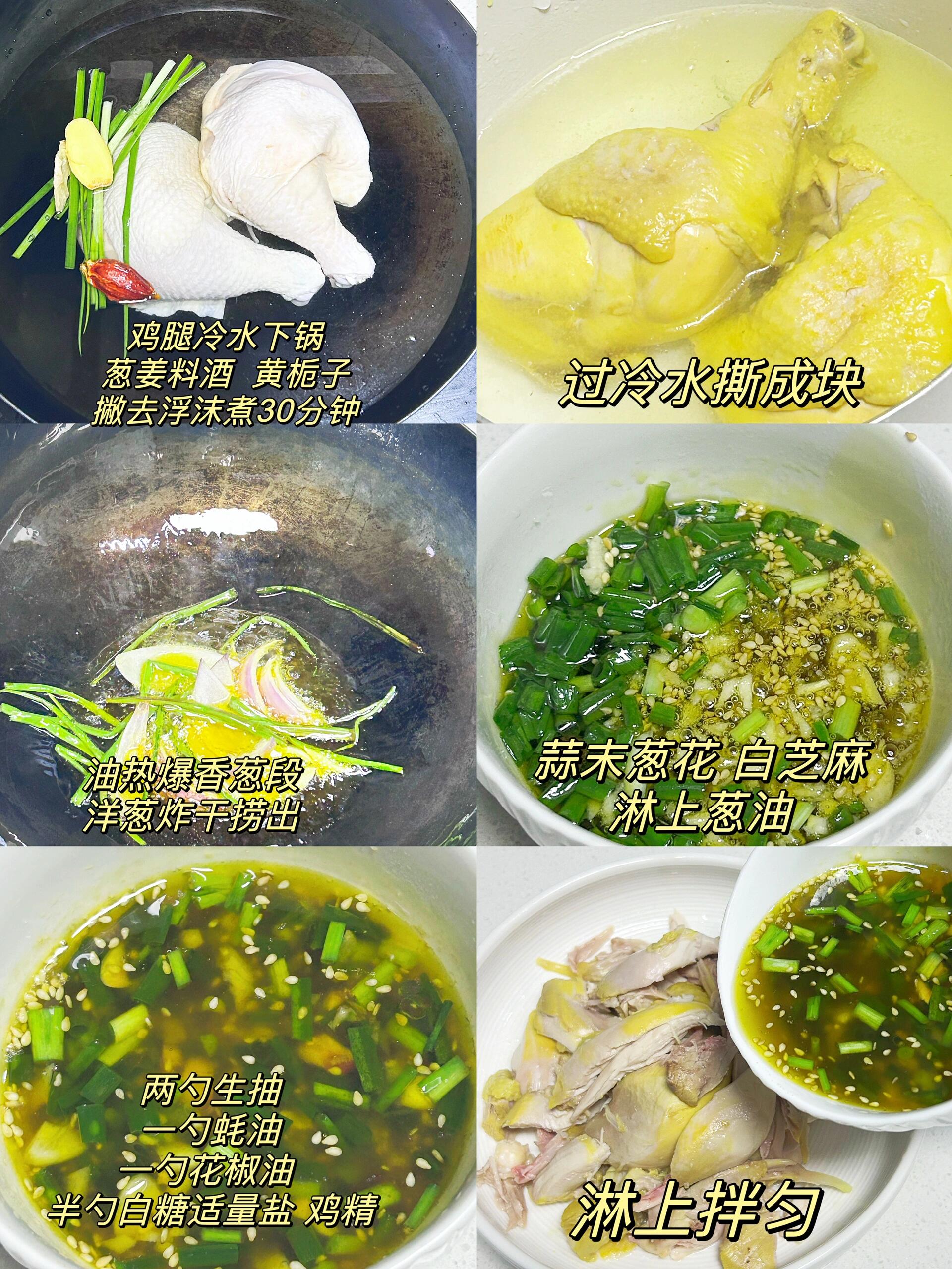 朋友每次来家里必点的葱油鸡腿(附教程) 我愿称之为鸡腿最简单最好吃的做法,大人小孩都爱吃,一周就要吃一次 食材:大鸡腿两个 洋葱 小葱 做法:1、鸡腿冷水下锅葱姜料酒 黄栀子撇去浮沫煮30分钟。(黄栀子为了上色没有也可以不放) 2、油热洋葱 小葱炸干捞出,蒜末葱花淋上葱油,两勺生抽一勺蚝油,一勺花椒油,半勺白糖 适量盐鸡精。拌匀即可!