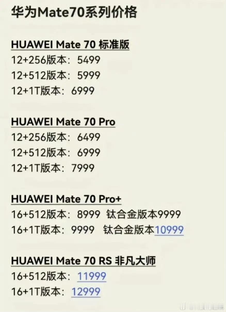 华为Mate70价格 买华为旗舰的好像都不太关注价格,价格虽然贵,但是大家依旧很热衷。大概率总体会维持上代价格,Mate70系列新增了钛合金版本,会成为一个涨价点。