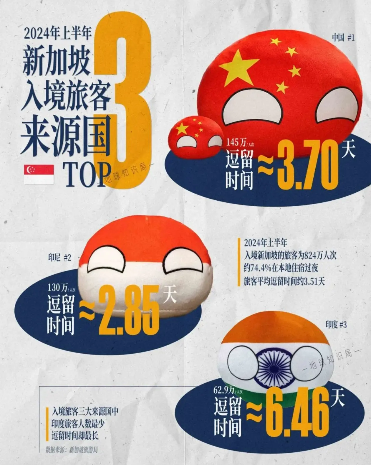 在过去的2024年上半年,入境新加坡的中国游客达145万人次,在外国游客中名列第一,超过了印尼的130万人次。