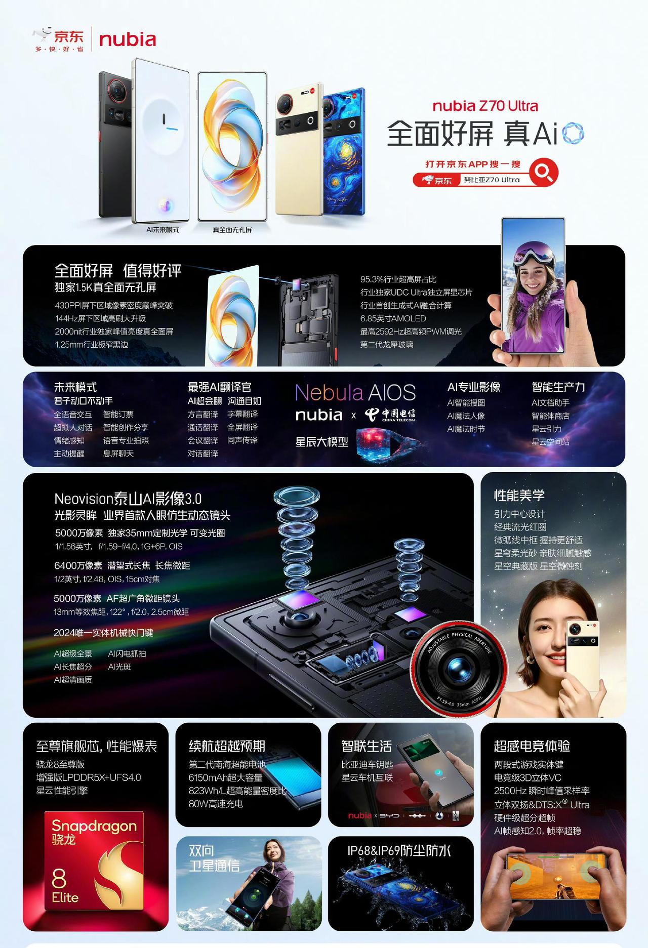 看完努比亚Z70Ultra,吓我一身冷汗!这定价也是真狠啊!作为中兴的子品牌,但是定价比xiaomi15这些各家主流旗舰还多100,4599起步。当然也不是说偏袒谁,因为比如他1.25mm边框,而且是第七代的无孔屏,屏下镜头。拍照说得过去,等效35mm主摄IMX906,还有F1.59-4.0可变光圈,保留了64MP大底潜望长焦,这些都算是亮点。但是指纹是超波光学指纹,不是超声波。电池容量6150mAh,但是只有80瓦快充没有无线,IP69倒是有。各位怎么看