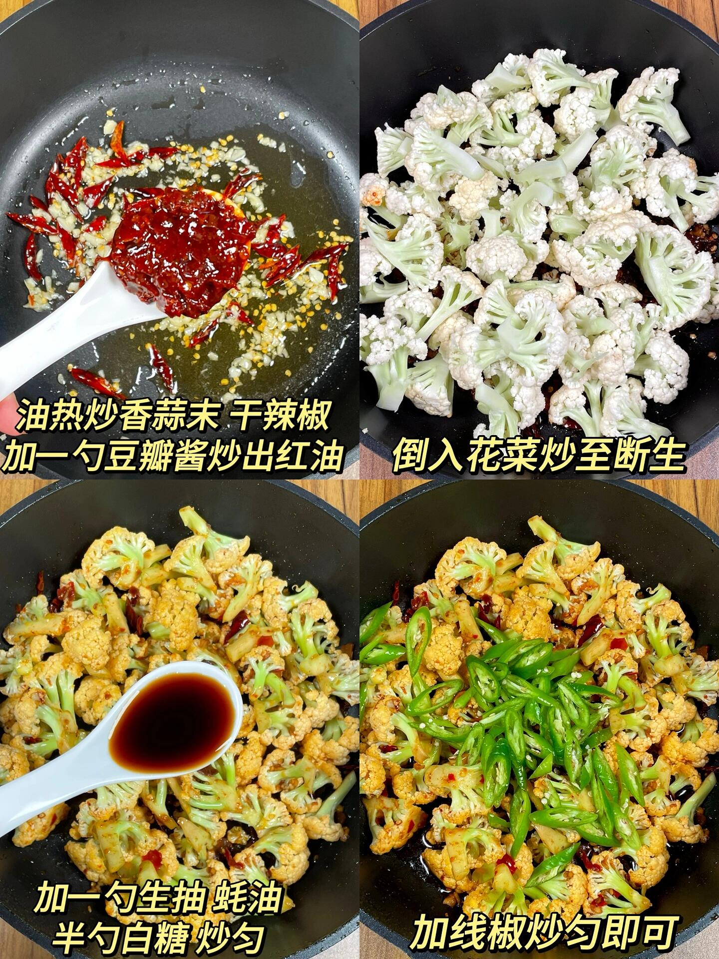 好吃到哭的干锅花菜!你们一定要试试!! 花菜一口脆嫩,香香辣辣的,完美复刻出饭店的味道,真的超好吃 做法简单不翻车,求你们都去做!! 食材:花菜➕蒜末➕干辣椒 做法:如图所示!