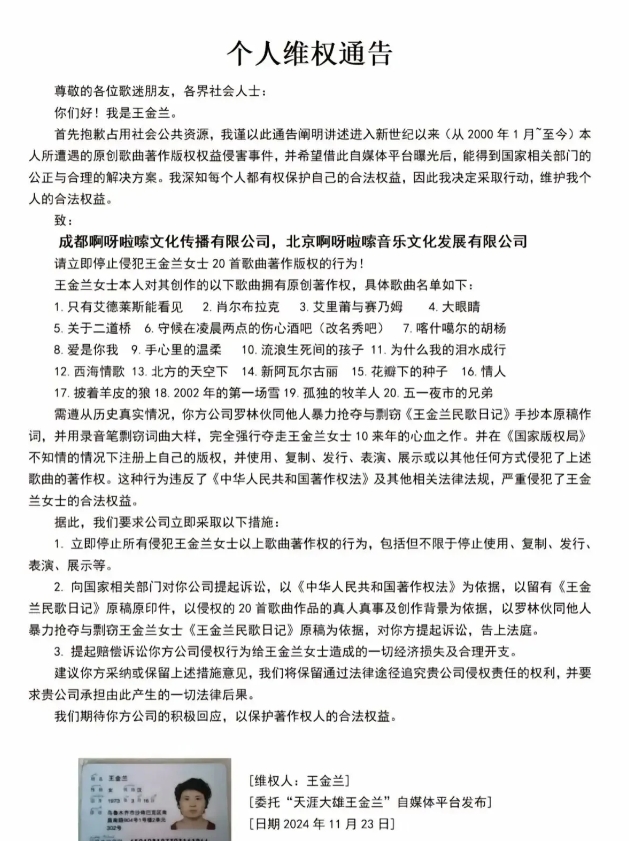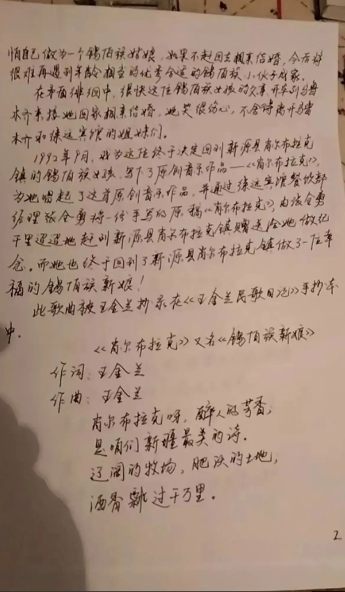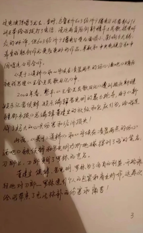 投诉刀郎20首歌曲剽窃的王金兰将手稿晒出来了。 它的真实性交给专业机构鉴定,咱们