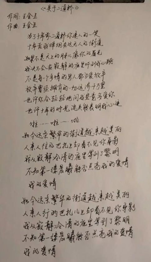 没有谱曲,只有歌词,既然是歌曲的手稿,那最起码也应该词曲同在!