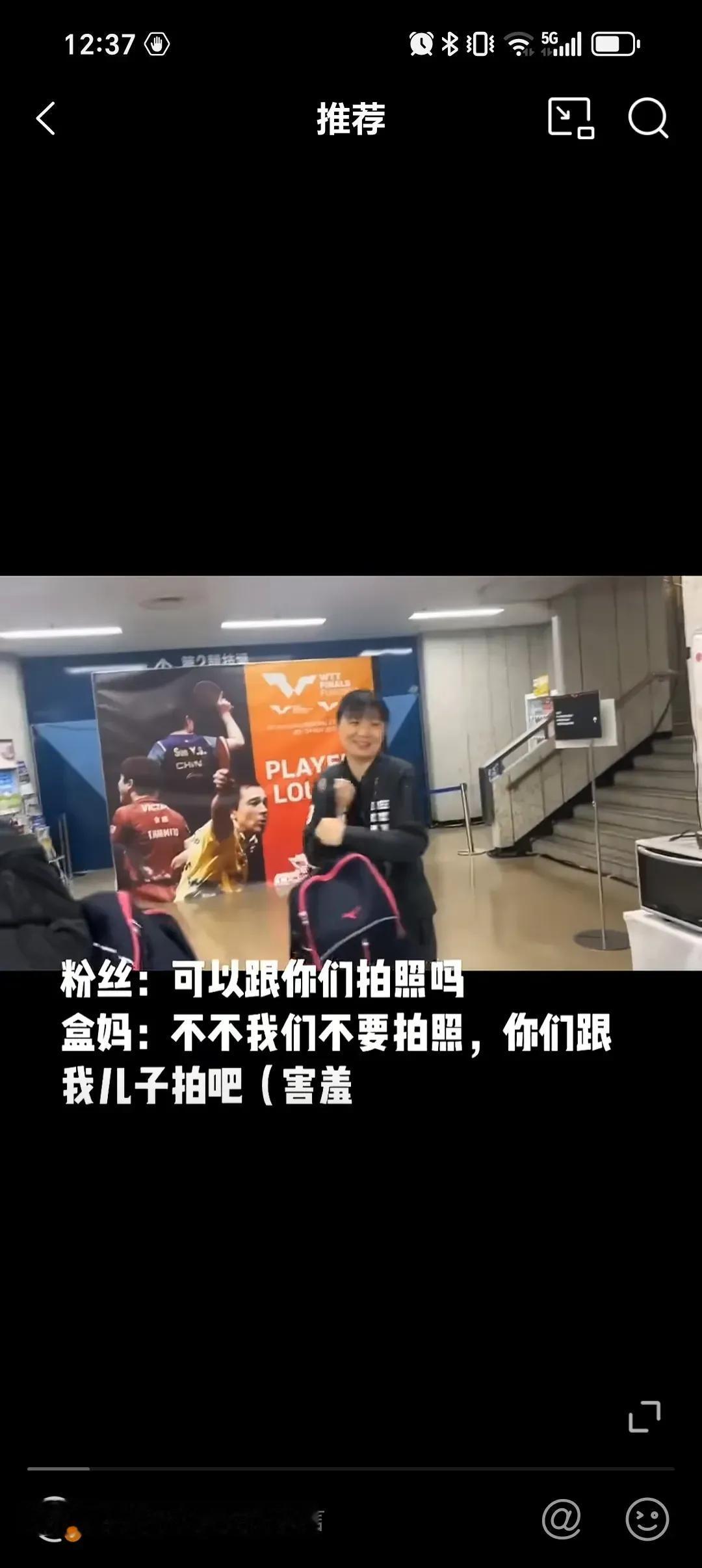 总决赛获得亚军的张本智和,在接受采访时他的父母在一边等他,他母亲很温和的笑容,输了难过一会,获得亚军也很成功,张本智和采访完快速奔向自己的父母,一家人有失去的伤感更有收获的幸福。 靠自己的努力打拼,不欠谁的,有付出就有回报。