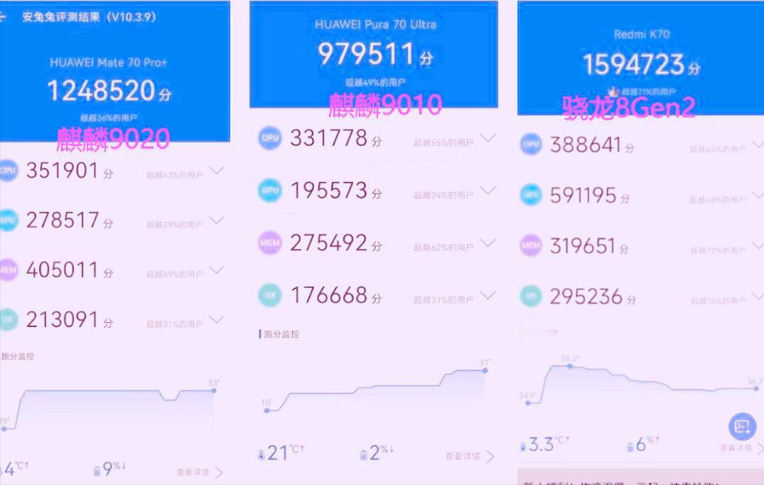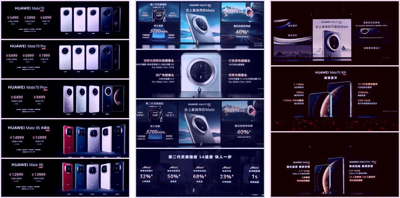 终于还是把Mate70发布会看完了 说句实话,我觉得这不是超越和碾压 反转来的太快。本以为处理器余承东没有展开讲,说明提升不大。没有想到这才两年时间,就已经进入了旗舰的行列。说句实话我觉得哪哪都好,当然我说了不算,但是这几个细节很到位 1:首先价格5499起步其实挺好接受的,毕竟今年手机都在涨价,但是他还能稳住。 2:配置没有想象中那么拉胯,首先标配就是1.5K的LTPO屏幕,颜值也说得过去。圆润中框这一点,我觉得很舒服, 3:标准版还是麒麟9010处理器,pro和pro+加上RS才是麒麟9020,相比之下GPU升级不少。 4:处理器工艺就目前来看是骁龙8+水平,完全够用了 5:拍照提升不小,150万色谱通道。潜望长焦镜头,USB3.1都是标配。标准版是1200万像素长焦,其都是4800万像素 6:pro和pro+的区别就在于,钛金属中框,支持天通卫星通话和卫星寻呼,WiFi7。 7:华为Mate70RS的精髓就在于双层OLED,后盖陶瓷,玄武昆仑玻璃 8:金丝银锦只有pro+才有这个配色的 怎么说呢!处理器虽然达不到8Gen2,但是功耗和发热。已经介于骁龙8+和骁龙8Gen2之间了。还是100瓦有线和80瓦无线充电,大家觉得华为Mate70怎么样