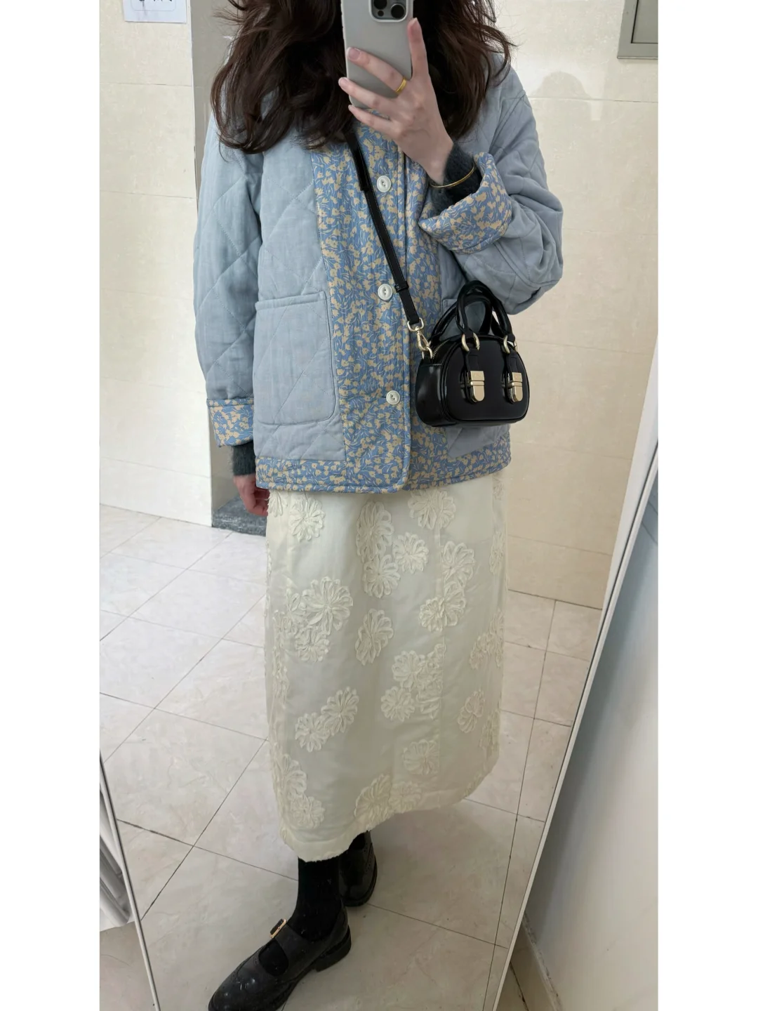 内搭穿什么/ 费尔岛毛衣和黑色丝绒半裙