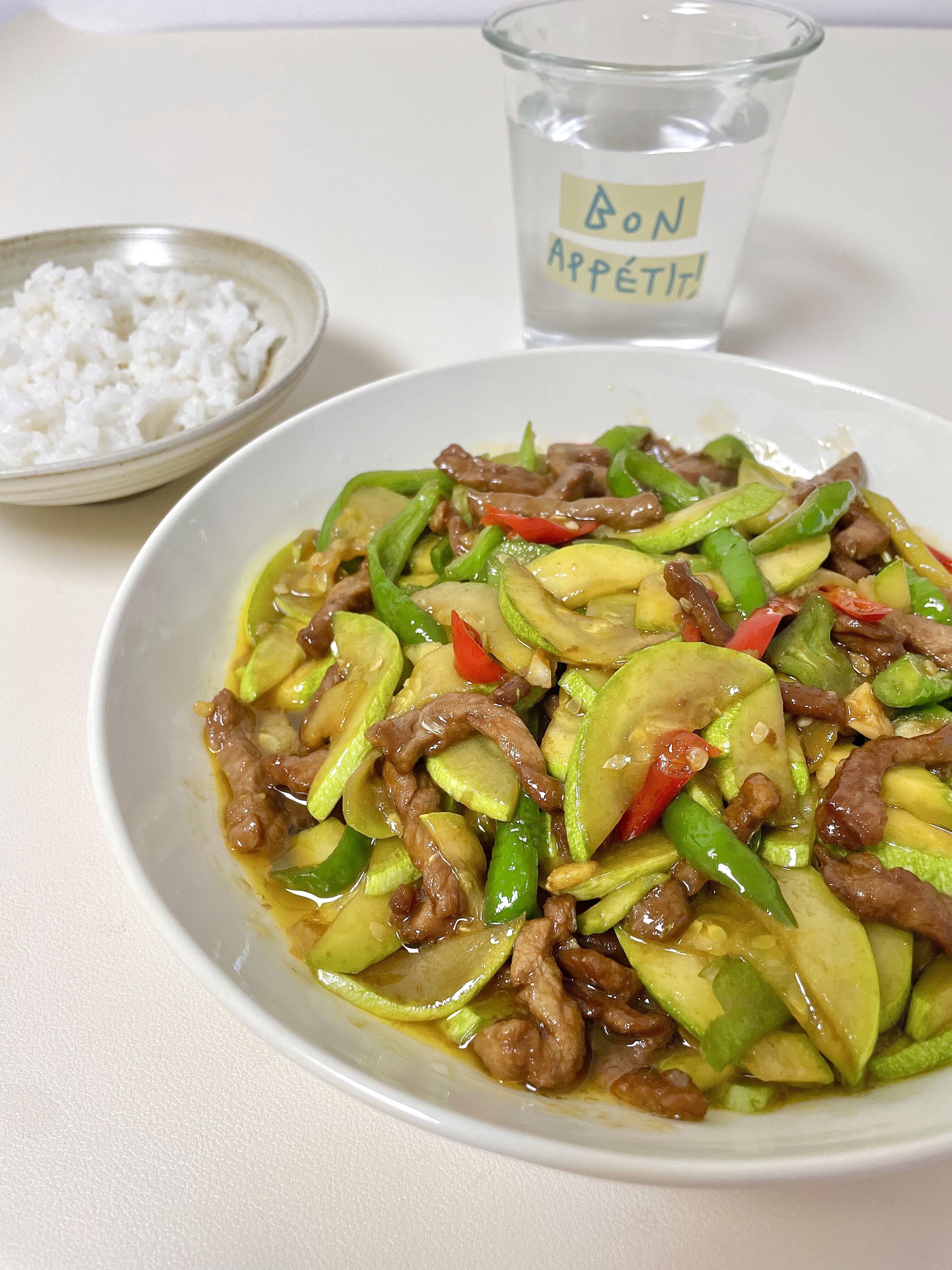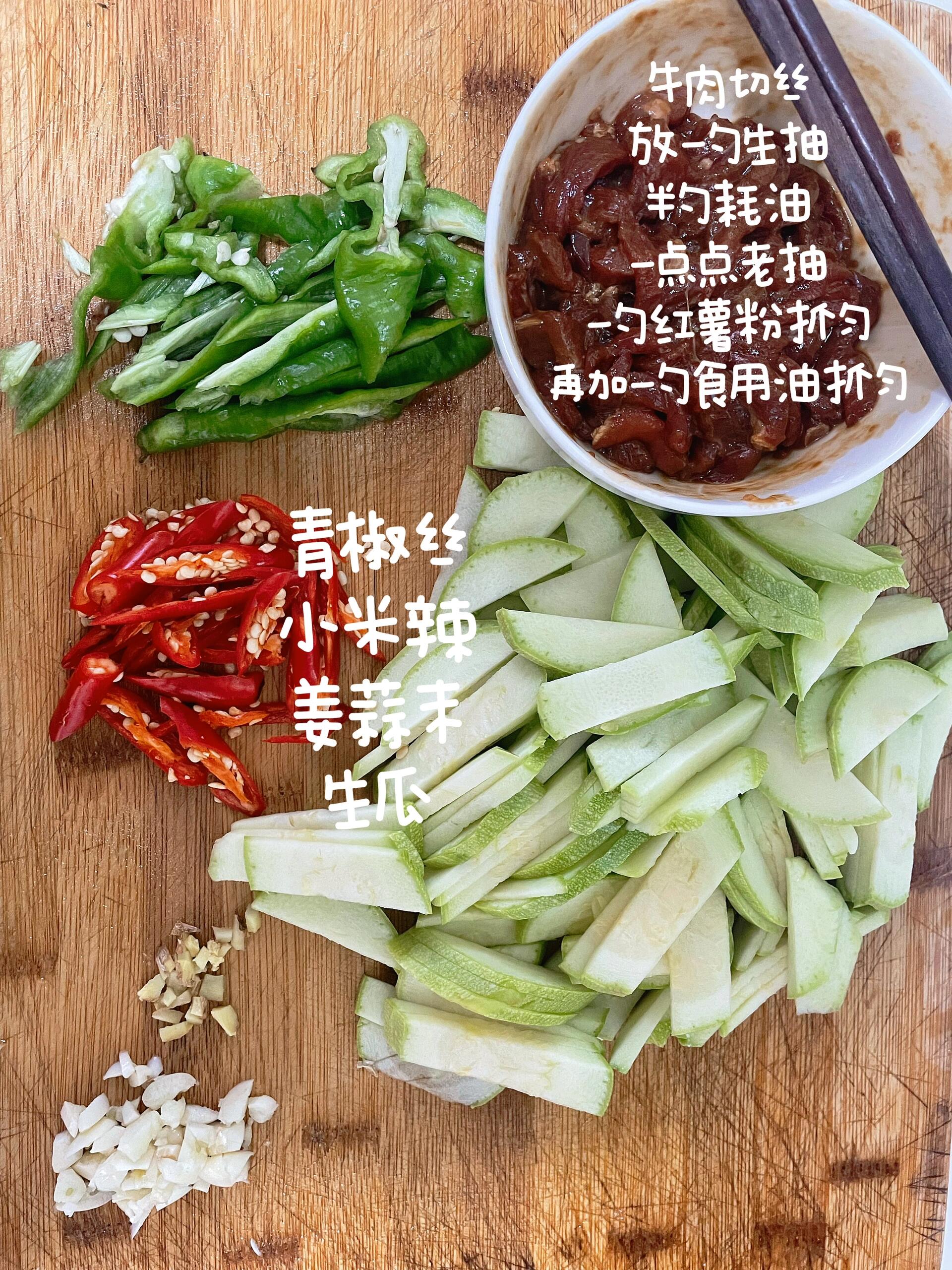 简单的家常菜像我这样做太好吃了 快去做 西葫芦炒牛肉丝(图片附教程) 牛肉切丝腌一下巨滑嫩入味,炒西葫芦一起又鲜又辣,太好吃了,简单好做又好吃,快去试试。 不知道大家是叫它西葫芦还是生瓜哦 食材:西葫芦 牛肉 小米辣 青椒 姜蒜末