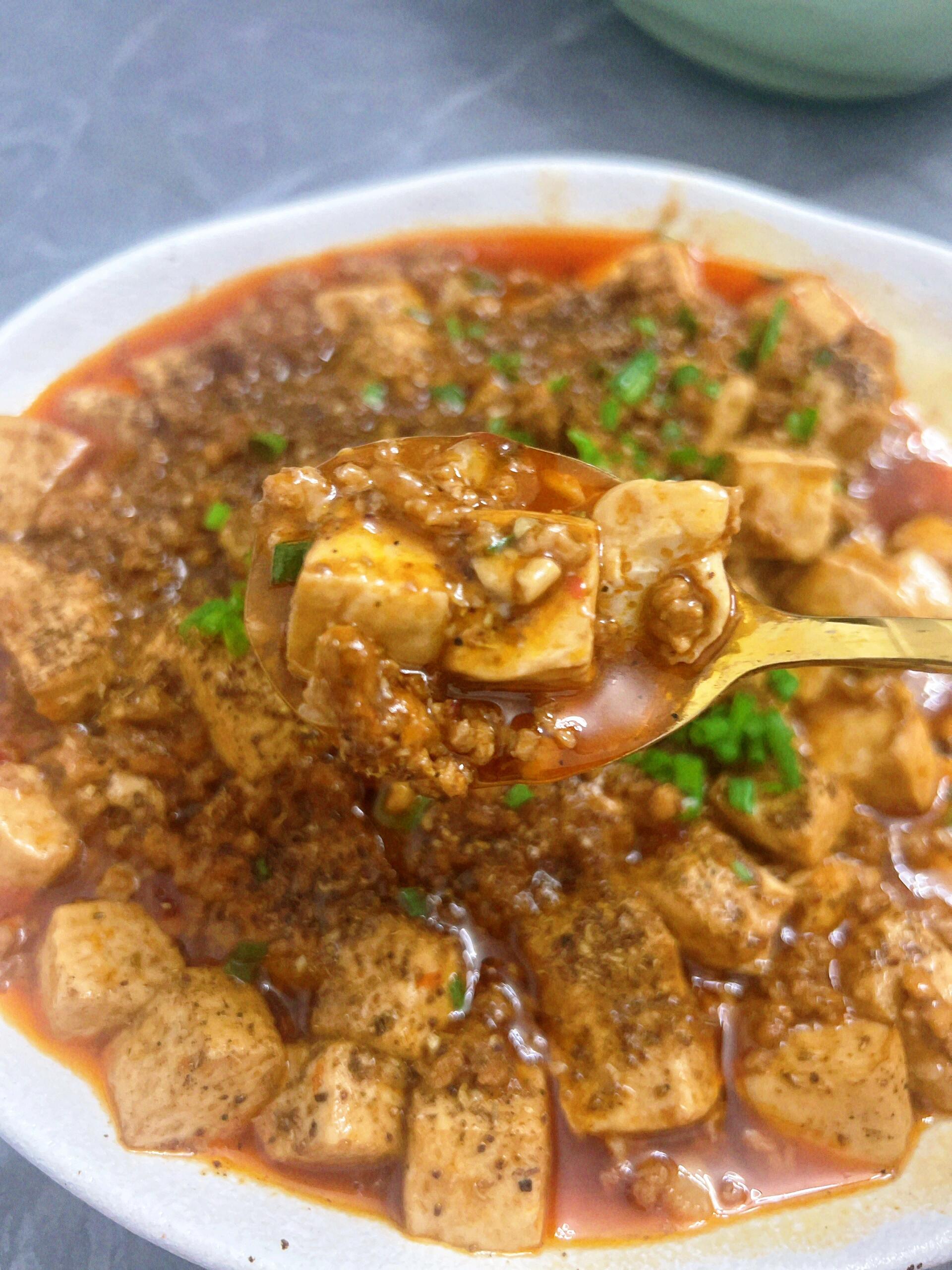 超级好吃的麻婆豆腐,家人们做起来吧 超级无敌爆下饭的麻婆豆腐,嫩滑鲜香,好吃得停不下来,家人们有时间一定要试试 食材:嫩豆腐 葱花 梅花肉 调料:葱 姜 蒜 料酒 老抽 生抽 盐 鸡精 做法 1、嫩豆腐切小方块 冷水下锅 到店点老抽焯一下水 水开5 6分钟捞出备用 2、油锅下肉沫快速滑散 炒干水分 在倒入姜 蒜 豆瓣 料酒 (料酒可以压住豆瓣的生味) 3、倒入焯好水的豆腐翻炒均匀 加适量清水 盐 鸡精 煮熟 起锅前到一点水淀粉(分三次倒) 4、装盘散点花椒粉和葱花