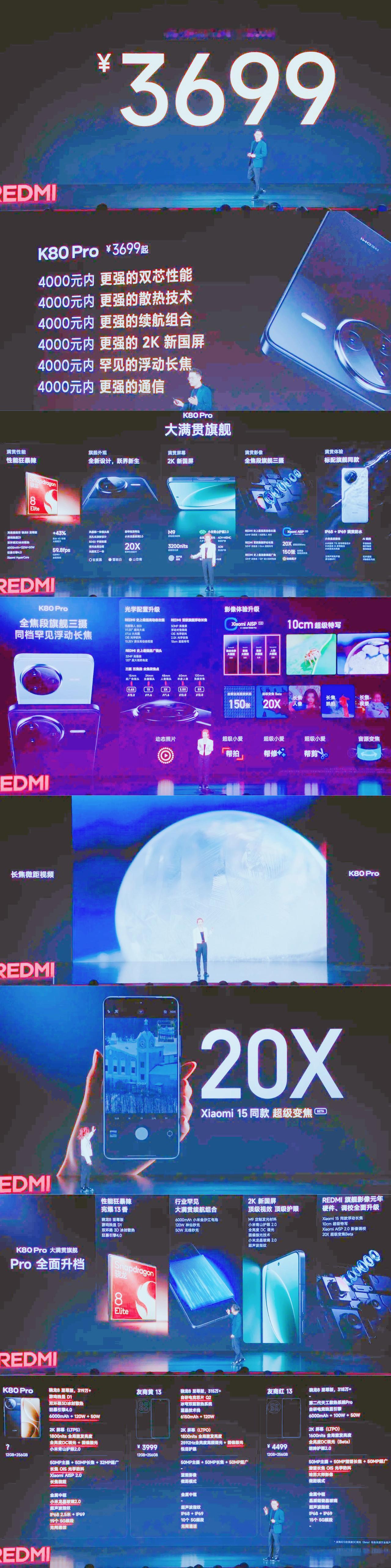 当雷军把红米K80首销成绩放出来的时候 这哪里还是碾压和超越 是把遮羞布揭开了,打的满地找牙啊!本以为今年就发布了两款手机,结果是超过了去年K70三款的销量成绩,66万台一天也就是24个小时就完成了。 这是什么概念呢!其实你看别家厂商发战报,不敢发布销量基本上就明白了。体验不会骗人,2499的骁龙8Gen3手机,还是2k屏超声波指纹,6500mAh电池和IP69等级防水防尘,拍照即便是凑合,完全也能接受吧! K80pro作为骁龙8至尊的手机,能用小米算法和AISP2.0,浮动微距镜头。加上6000mAh电池和无线充电,这就足够让友商喝一壶了吧!