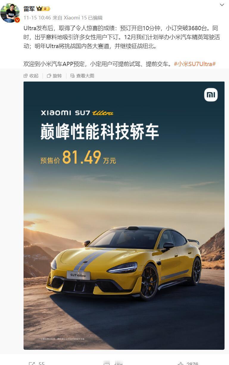 余承东虽然没有摆在台面上明说,但是很明显雷军已经学到了精髓 小米SU7Ultra开启预定,10分钟3680台,81.49万 华为尊界开启预定,48个小时2108台,售价100到150万 伤害不大,侮辱性极强!这下车圈彻底失控了,其实已经在变天的路上啦!这样来说吧!品牌价值和信仰,才是真正的遮羞布,归根到底还是天然的信任。在手机行业雷军说过,智能手机时代结束了,国际只认可三星和iphone,而国内用户都认可华为。说白了就是其他品牌都无法取得用户的绝对信任,因为品牌价值说白了就是让外行人都能无条件认可你的。就像苹果,三星,华为,其实不懂手机的人也都知道,这些是好手机,价格高 而到了新势力车圈,这种情况更是显而易见的。你像小鹏,理想,蔚来都要建立新用户信任,弄不好直接就翻盘了,因为大家压根没有听过这个品牌,当然现蔚小理算是个特例,现在算是出圈了。你看新能源市场,估计每天都有倒闭的品牌。 但是余承东和雷军倒好,余承东带着塞力斯来了,甚至没有logo,就是说我和华为合作的,而且是深度合作的那种,华为帮我们设计,做的智能驾驶,我们都要听他们的那种。最后其实你看2021年到2022年,问界M5第一款车型到现在3年时间,你看四五十万的问界M9,销量都是十几万台了。说句难听的,蔚来小鹏都是14年和15年左右的品牌,你见过他们这个价位的车子有这样的销量吗 而雷军更是如此,其实我一直说过,雷军做的最正确的事情是没有换logo。因为大家对于品牌价值很敏感,现在阿维塔,极氪等等类似的,为什么没有出圈。因为你非要换个名字,大家都不认识,都没有听过。而小米手机大家都听过吧!小米汽车一出来家喻户晓了 所以你看雷军创造了历史,一个品牌,第一次造车,同时发布的第一款车型。用了8个月时间。目前销量20万台,雷军计划是12月底交付13万台。 当然还有一点是科技属性,这就是手机品牌拿手好戏。知道怎么让系统变得流畅,知道用户的交互体验。同时还有大模型的基础,人才储备本身就比较多。未来的车子一定有科技属性的,半导体时代。智能驾驶20多万都标配了,这情况在3年前常见吗?这就是问界和小米入局一直强调的,当然未来还会有很多的科技创新 说白了就是让用户觉得,问界和小米汽车科技属性强,智能驾驶做得好。别家是没有的,当然认知和机遇把控同样也是他们的强项。所以你看吧!别看尊界S800和小米SU7Ultra都是上百万的豪车,甚至这两个做汽车都还是入门级的品牌,再过几年肯定是血洗汽车市场的。