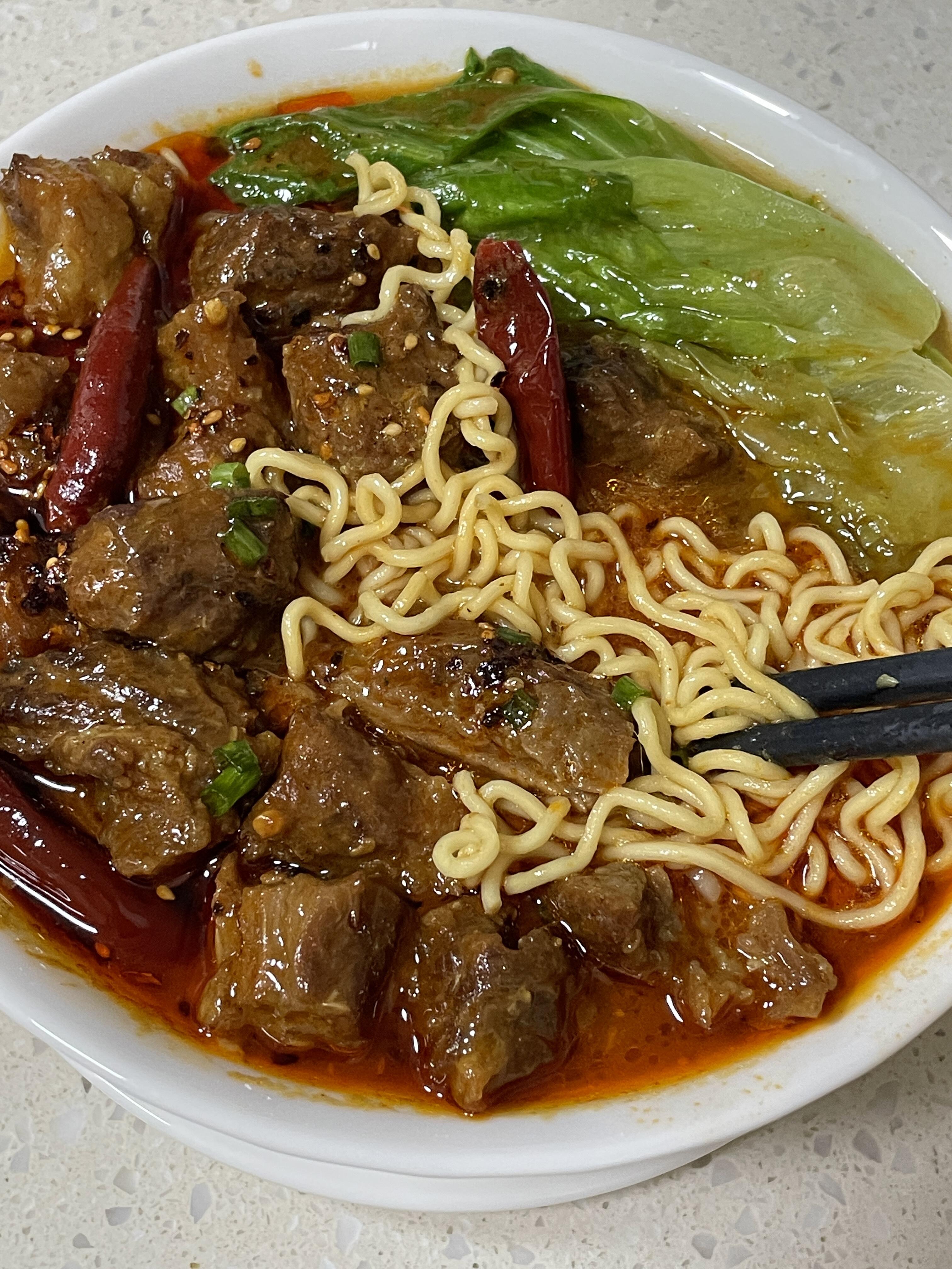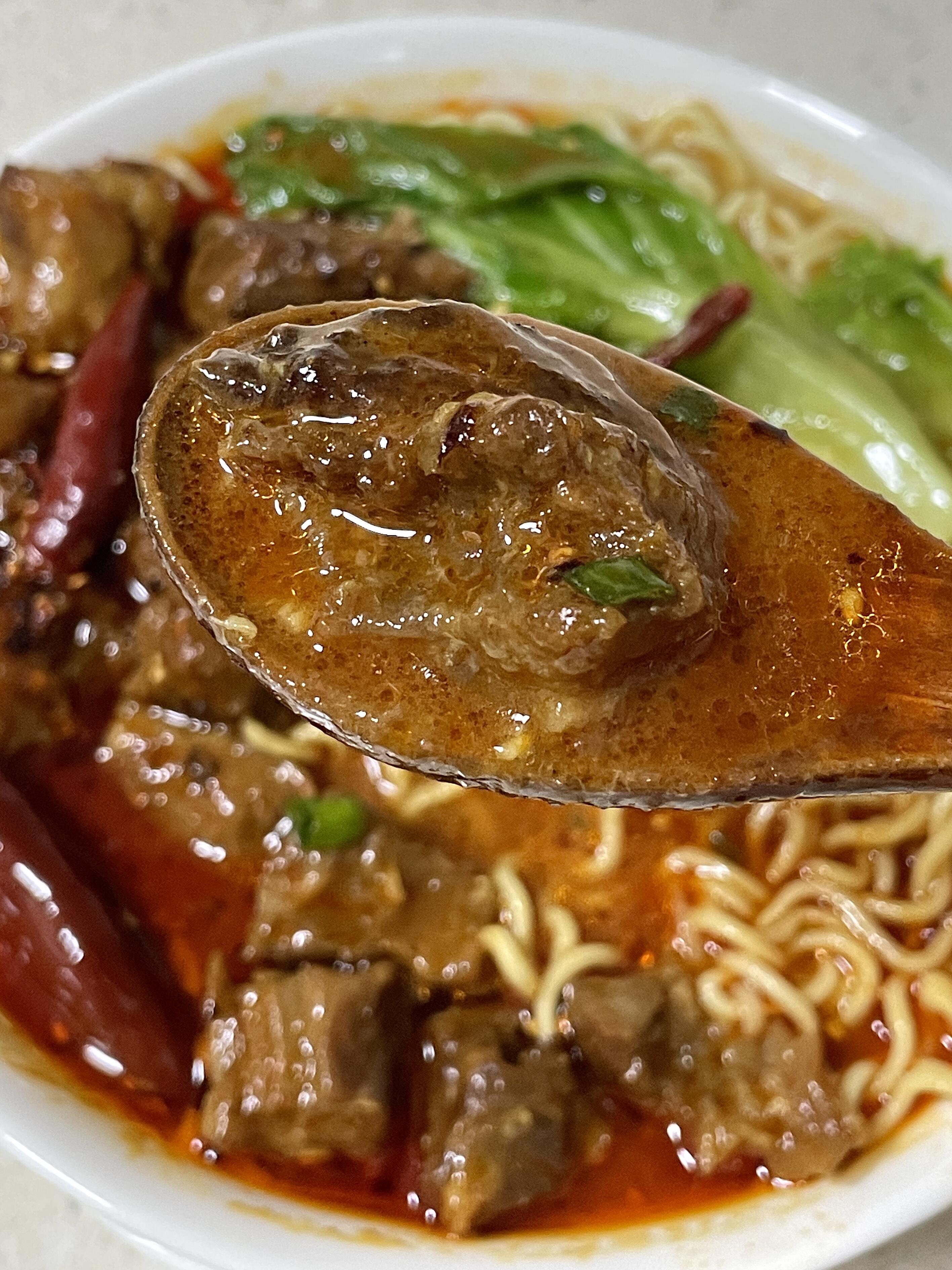 出息了!这个家庭版红烧牛肉面全家都夸!! 自己在家煮的牛肉面味道真的不输面馆里的! 牛肉炖的酱香浓郁,软烂入味! 配上泡面真的好好吃 - 食材:牛腩,泡面,生菜,葱姜蒜,干辣椒,桂皮八角香叶,花椒,豆瓣酱,冰糖,料酒,生抽,老抽 做法都在图里 煮的时候可以多加点开水,留多一点汤汁来配饭配面都好香~