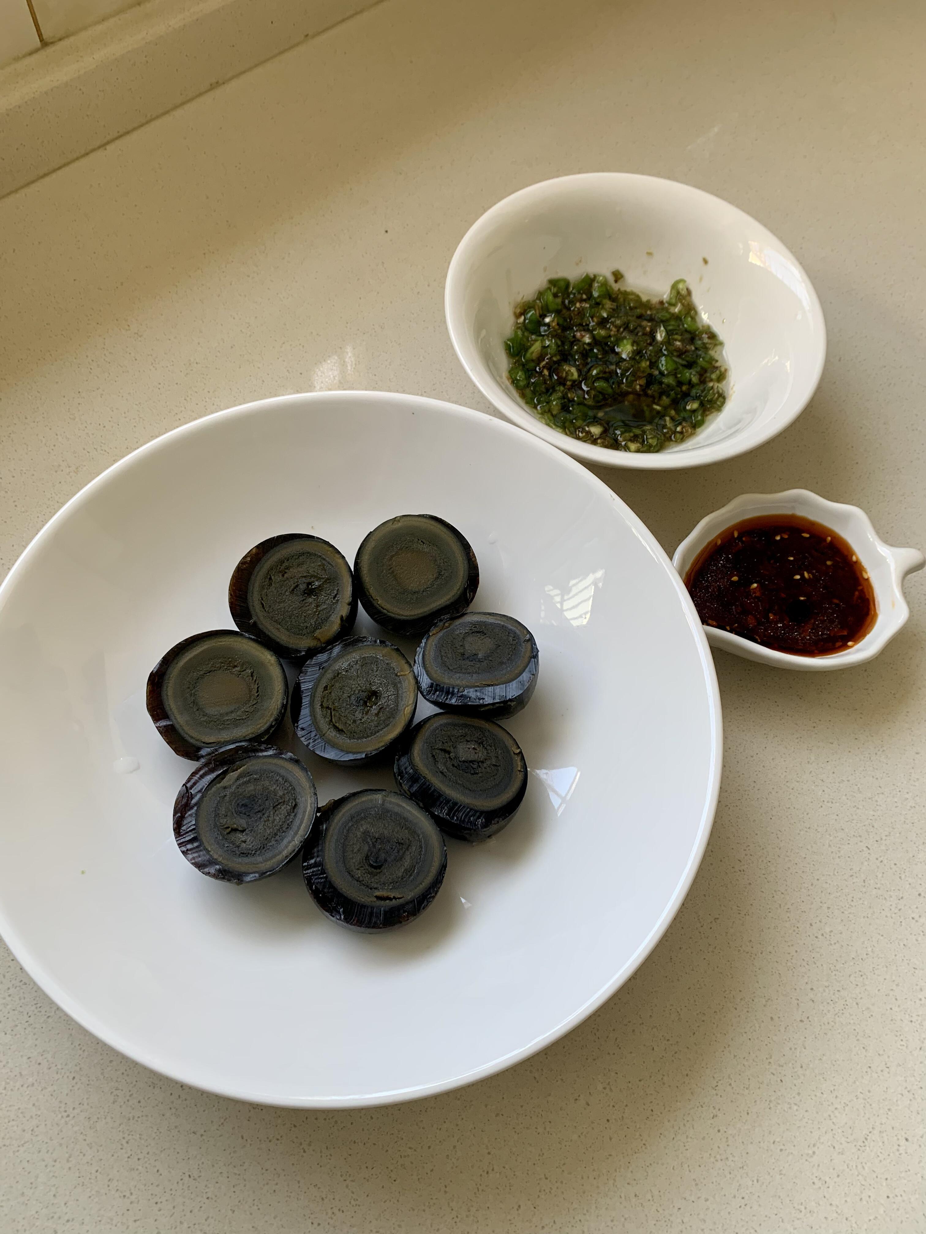 凉拌皮蛋,大家都爱吃不,平时都是切小片,这次换个切法,𣊬间摆盘也高大上了。(主要是想告诉大家这样切)