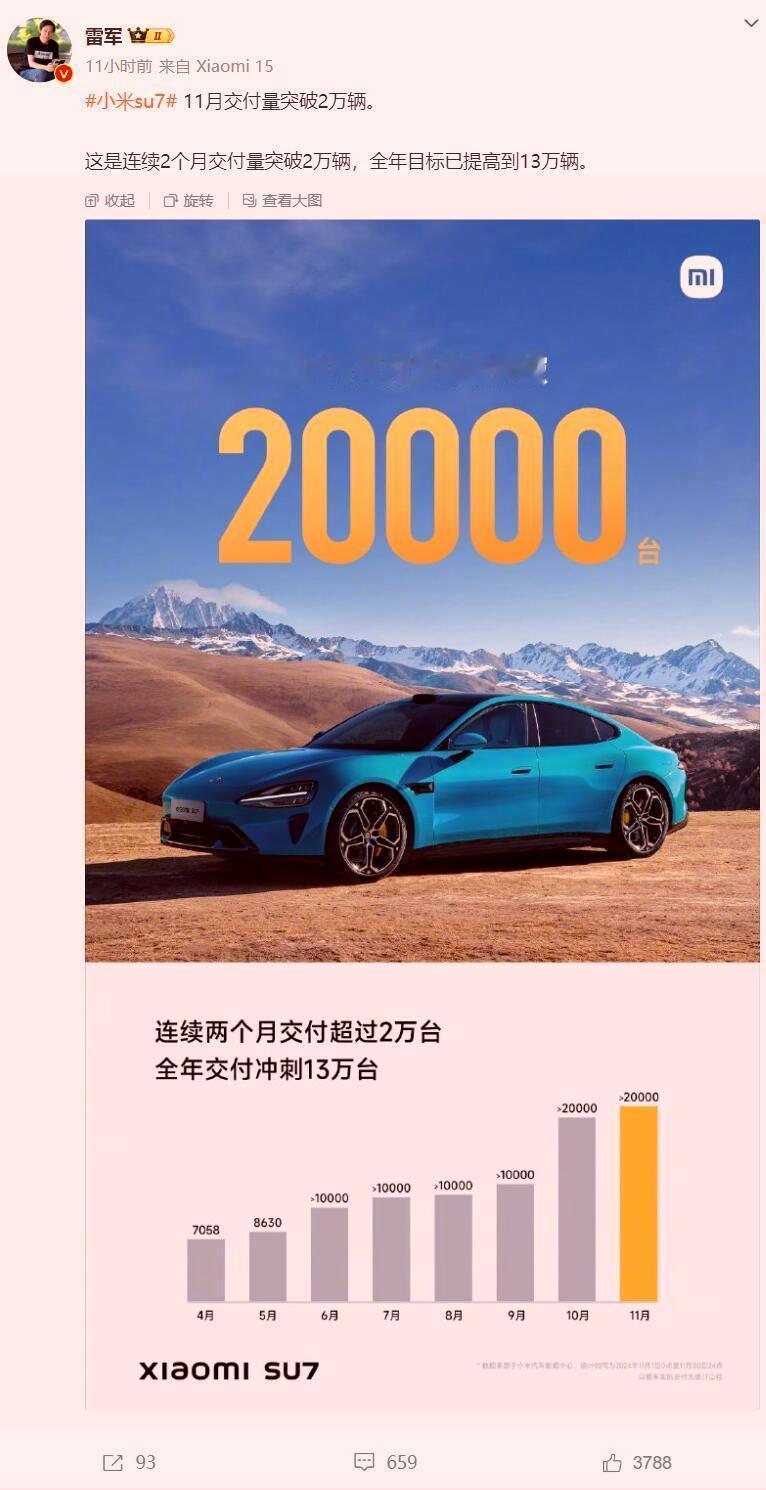 字越少,事越大 余承东和雷军彻底刹不住了 鸿蒙智能和小米SU7又干起来啦!雷军说电车只有特斯拉在赚钱,到底对不对已经有了答案。小米SU7开售8个月,其中4个月销量超过1万台,2个月销量超过2万台。鸿蒙智行,从1月份到10月份四个月超过了4万台,5个月超过了3万台,还有两个月是2万台销量 说句实话,实际上大家就想看华为和xiaomi造车的对比。但是我觉得没有什么可比性,因为小米发布车子才几个月,压根也不公平。真还不如看看综合市场的表现,其实你会发现一个问题。那就是小米和问界都是黑马。起码在新势力中,除了比亚迪之外。20多万以上的市场,小米和问界以及理想占据了5成甚至更高的销量,这是为啥: 这样来讲吧!品牌价值在这里面起到了关键作用,在汽车行业,新势力最辛苦的实际上是前期和用户建立信任,甚至一款产品搞不好就要崩盘。因为本身知名度不高,其实就像蔚来,小鹏,理想。在车圈其实挺出名的,但是你知道他们做了多少年才让用户慢慢信任了吗?实际上都马上超过了10年 但是余承东带着鸿蒙智能驾驶,雷军带着小米SU7端到端大模型,自研端到端智能辅助驾驶过来了。他们不需要任何铺垫,这样来说吧!华为在大家心目中是什么认知,强大,霸道,自研发,国内科技企业的巅峰的等等。关键是他不是让你看,而是让你体验,塞力斯和华为合作以后,前期虽然亏损,但就一年时间,华为智能驾驶ADS出世之后,基本上塞力斯就开始盈利了 新能源是什么,电池+智能驾驶。以前大家想要对于电车的理解就是省电,我想省油。但是智能驾驶的介入,让新能源得到了升华。20多万的问界有智能驾驶,体验那么好。其他品牌就要跟,但是和华为智能驾驶相比,差距拉开了。关键是20多万的车子,实际上动力都相差还不多,其次是觉得电车跑不远,塞力斯和华为还有增程车型。一切都满足你 你看以前,理想,小鹏,蔚来都是纯电,追求豪华感。智能驾驶虽然也有,但是不算优秀。而华为问界到来以后,他们感受到了压力,分别开始加快推行端到端。 而小米更是如此,余承东曾经就评价过小米,CEO亲自下场,小米的流量是传统车厂的二到三个流量级。关键是华为小米深入人心,就像很多品牌发展了七八年,很多人还不认识。小米一说要发布汽车,弄得国内皆知,关键是生态,车机系统,智能驾驶都是目前的核心,而小米则是精通此道,而且做得很完美。造型,防晒,反正就是细节很完美 所以怎么说呢!虽然这只是我个人观点,可能每个人想法不同。但是现实就是如此,随着小米SUV上市,后面车型越来越多。问界的势力扩张,新能源将会面临淘汰赛。理想不得已推出个L6,小鹏MONA3,华为P7+也跑到了18万级别。蔚来的乐道L60,都开始往低价格走了。因为之前他们因其为傲的20多万级别,已经慢慢被问界,小米等其他品牌吞噬啊!关键还是有国外特斯拉也在挤压市场,所以以后想要盈利,只能再往下走。所以雷军所说的是真话啊!大家怎么看