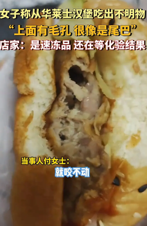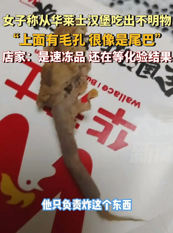 恶心坏了!西安一女子在华莱士买了个汉堡,吃了一口感觉很奇怪,她仔细察看,竟然是一个不明物体,上面有毛孔,看起来像极了尾巴,店家:是速冻品,还在等待化验结果。 “肉里好像有什么东西……”这句话在赵女士脑海里反复回荡,挥之不去,她瞧着手里的汉堡,肚子突然像被搅得翻天覆地,原本期待的美味午餐,瞬间变成了惊悚片现场。 那块原本应该鲜嫩多汁的肉饼,此刻却像一块坚硬的石头,牢牢地卡在她的记忆里,更卡在了她的喉咙口。 时间倒回几小时前,赵女士像往常一样,打开外卖软件,熟练地找到了那个熟悉的logo——华莱士。 作为一名资深“打工人”,她对便捷又实惠的华莱士汉堡早已习以为常,前一天晚上加班到深夜,她本想犒劳自己一顿汉堡,但考虑到健康问题,还是忍痛留到了中午。 中午终于到来,赵女士满心期待地打开包装,她急不可耐地咬了一口,可预期的美味并没有如约而至,肉饼的口感出奇的硬,还带着一股奇怪的腥味。 她放下汉堡,仔细查看起来,这一看,让她彻底傻眼了,肉饼里赫然嵌着一个不明物体,表面布满颗粒状突起,形状像极了某种动物的尾巴,赵女士赶紧用手机拍下了那让人恶心的一幕。 她联系了华莱士门店,要求对方给出解释并赔偿,可是店家的回应却让她更加气愤,“我们只负责炸,用的都是速冻产品。” 赵女士一听,这简单的回复竟让她火冒三丈,三百块的赔偿要求被商家一口回绝,理由竟然是“不知道是什么东西”,商家表示,他们已经将异物送去化验,需要等待结果。 赵女士的不幸经历在网上引起了广泛关注,网友们纷纷表示,自己也曾遇到过类似的食品安全问题,对华莱士的食品安全管理提出了质疑。 有人调侃:“华莱士,你这是加肉还是加料啊?”也有人担忧:“以后还敢吃快餐吗?” 这起“汉堡藏尾”事件,不仅仅是赵女士一个人的“惊魂午餐”,更是一面镜子,照出了食品安全责任链上的种种问题。 一些小作坊为了降低成本,可能会忽视食品安全标准,使用劣质原料或简化生产流程,从而埋下安全隐患。 华莱士作为一家连锁快餐品牌,在食品安全管理上负有不可推卸的责任,这种“只管炸”的说法,明显是在逃避责任,他们有义务对供应商提供的速冻产品进行严格的质量检验,确保食品安全。 只有把食品安全管理做到位,从源头到终端一个环节都不放松,才能让消费者放心,才能保证企业长远发展。 来源:大象新闻