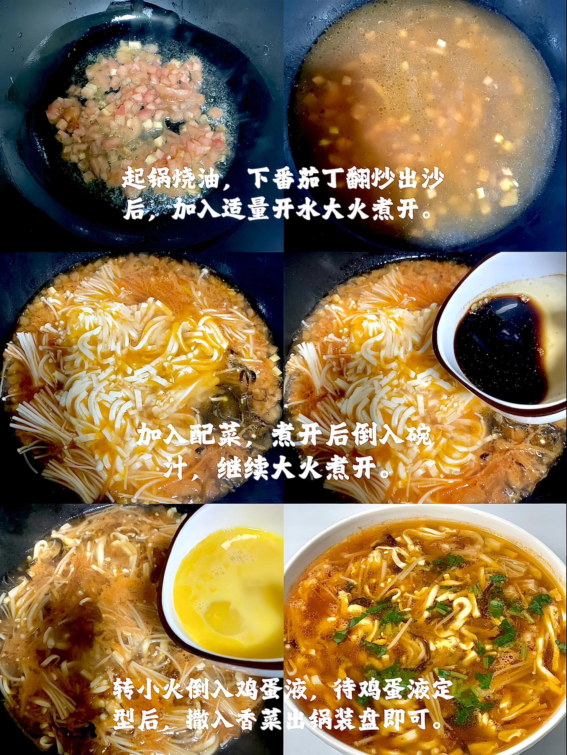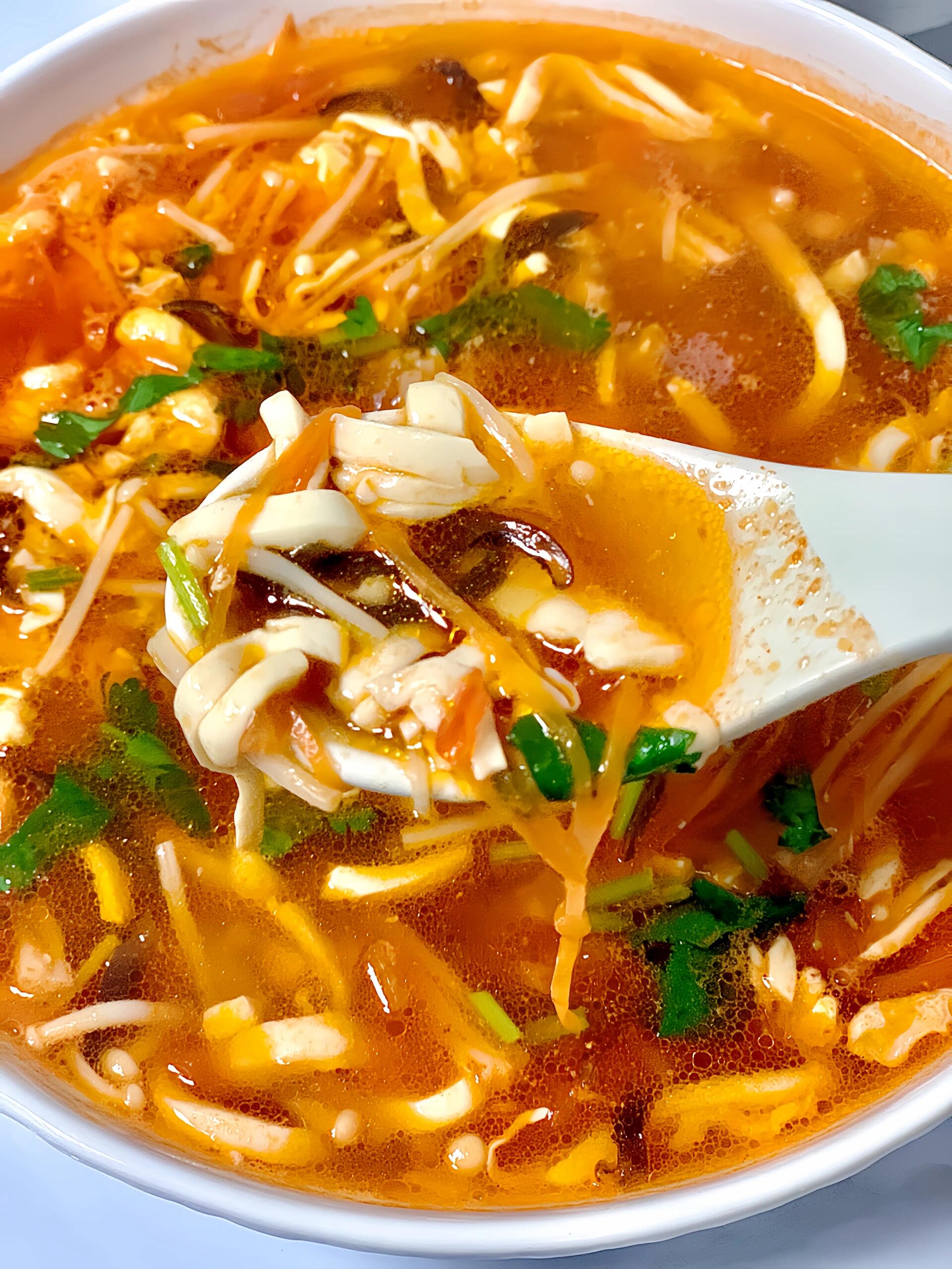 好喝不胖的酸辣豆腐汤,10分钟轻松搞定 分享一款好喝不胖的酸辣汤,汤汁浓郁,低脂低卡,酸爽开胃,有手就会做,一起试试吧~ 食材准备:嫩豆腐、胡萝卜丝、木耳丝、西红柿、鸡蛋、金针菇 做法 1、起锅烧油,西红柿丁翻炒出沙后,倒入适量开水大火煮开。 2、加入准备好的配菜,大火煮至断生后,倒入提前配好的碗汁。 3、煮开后,转小火,倒入鸡蛋液,待鸡蛋液凝固后,出锅撒香菜装盘即可。 一周连喝7天也不腻,快安排起来哇~