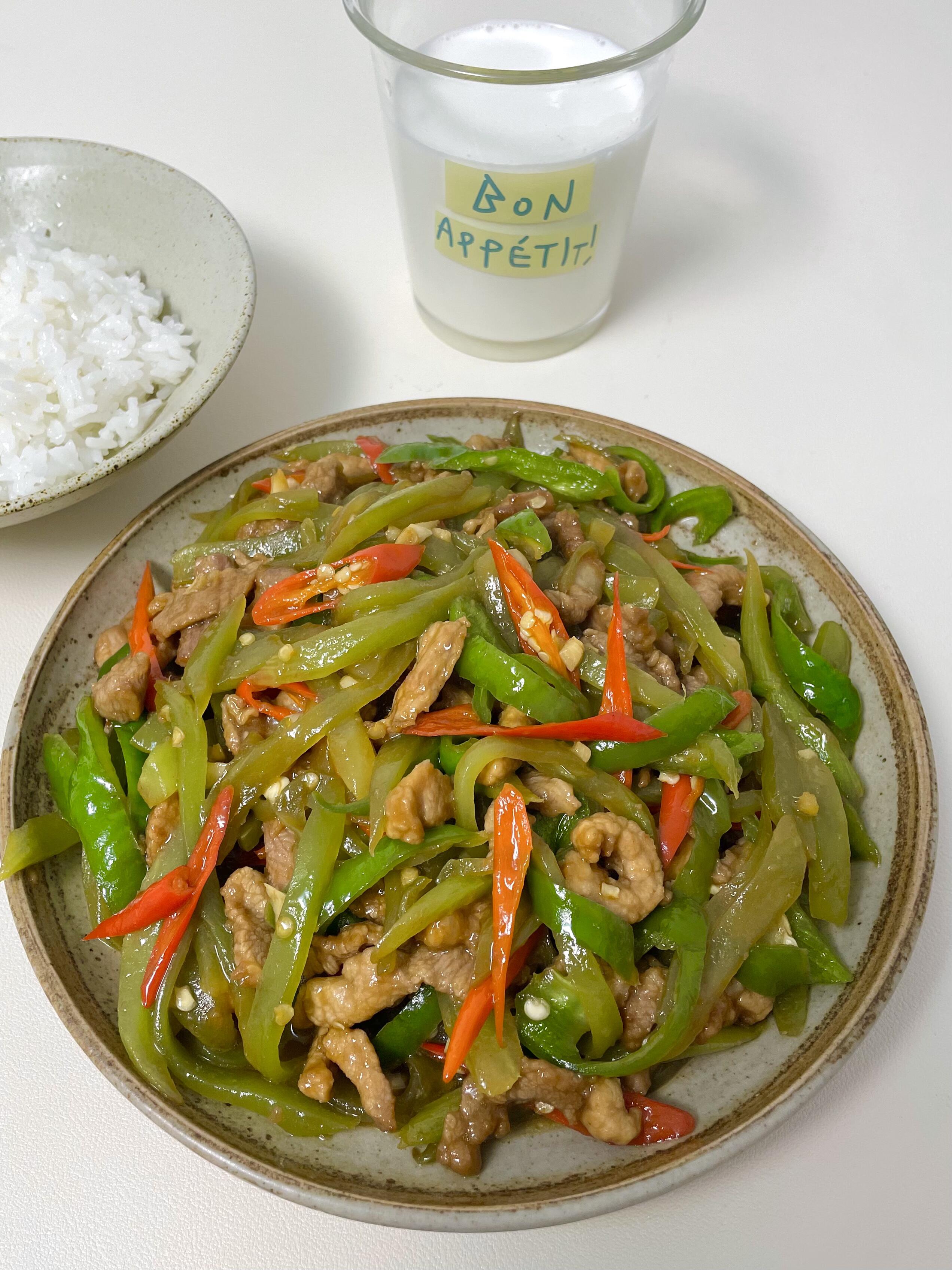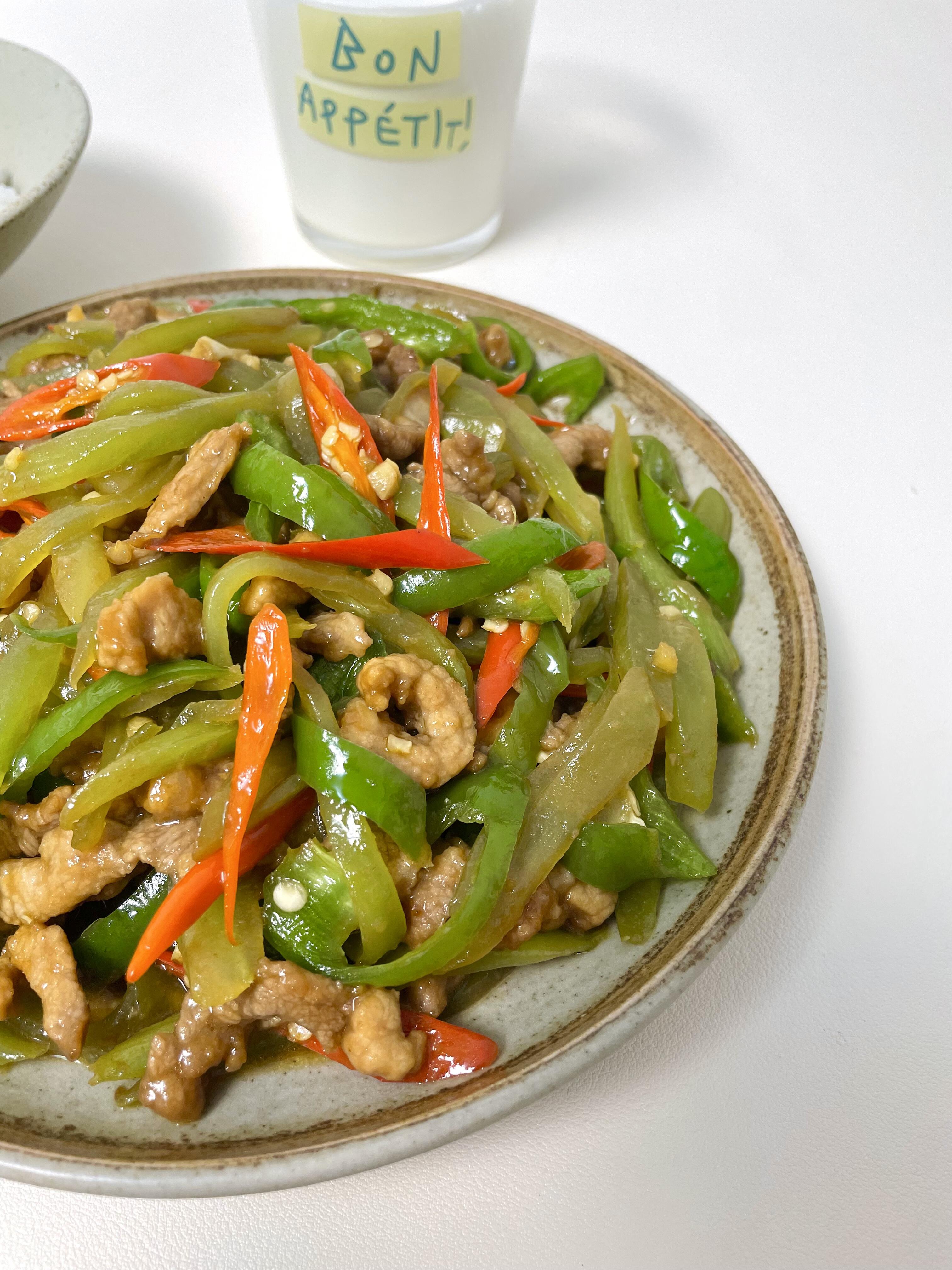 肉提前腌制了,炒出来滑嫩入味,莴笋吃起来脆脆香香的,做这个菜米饭又要多煮一点了。 食材:瘦肉 莴笋 小米辣 青椒 姜蒜末