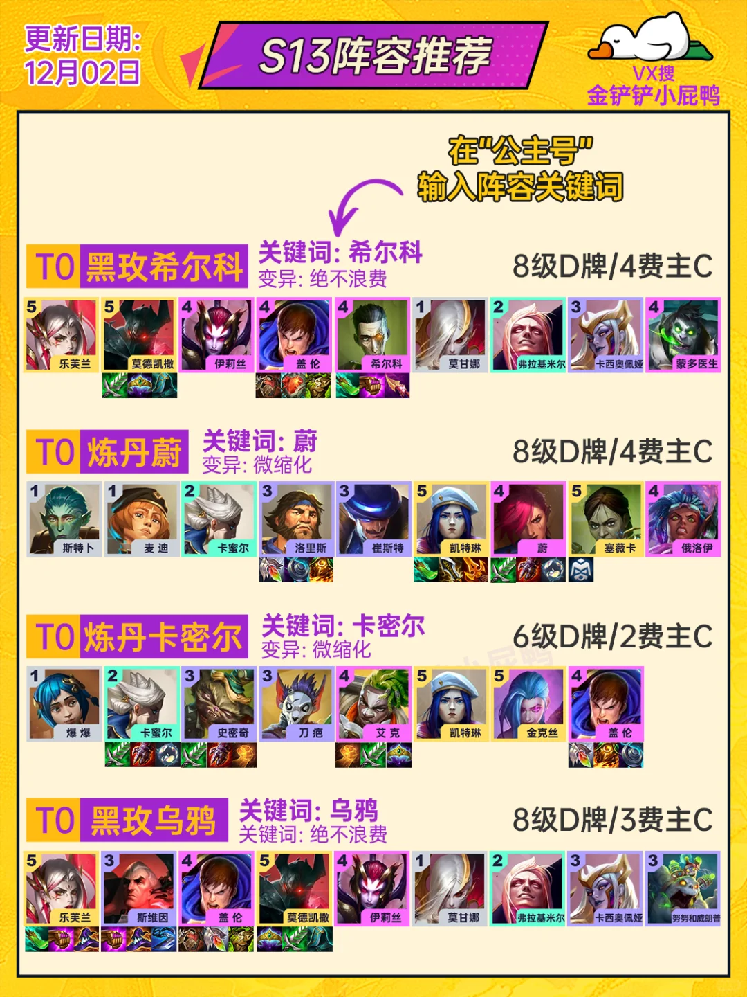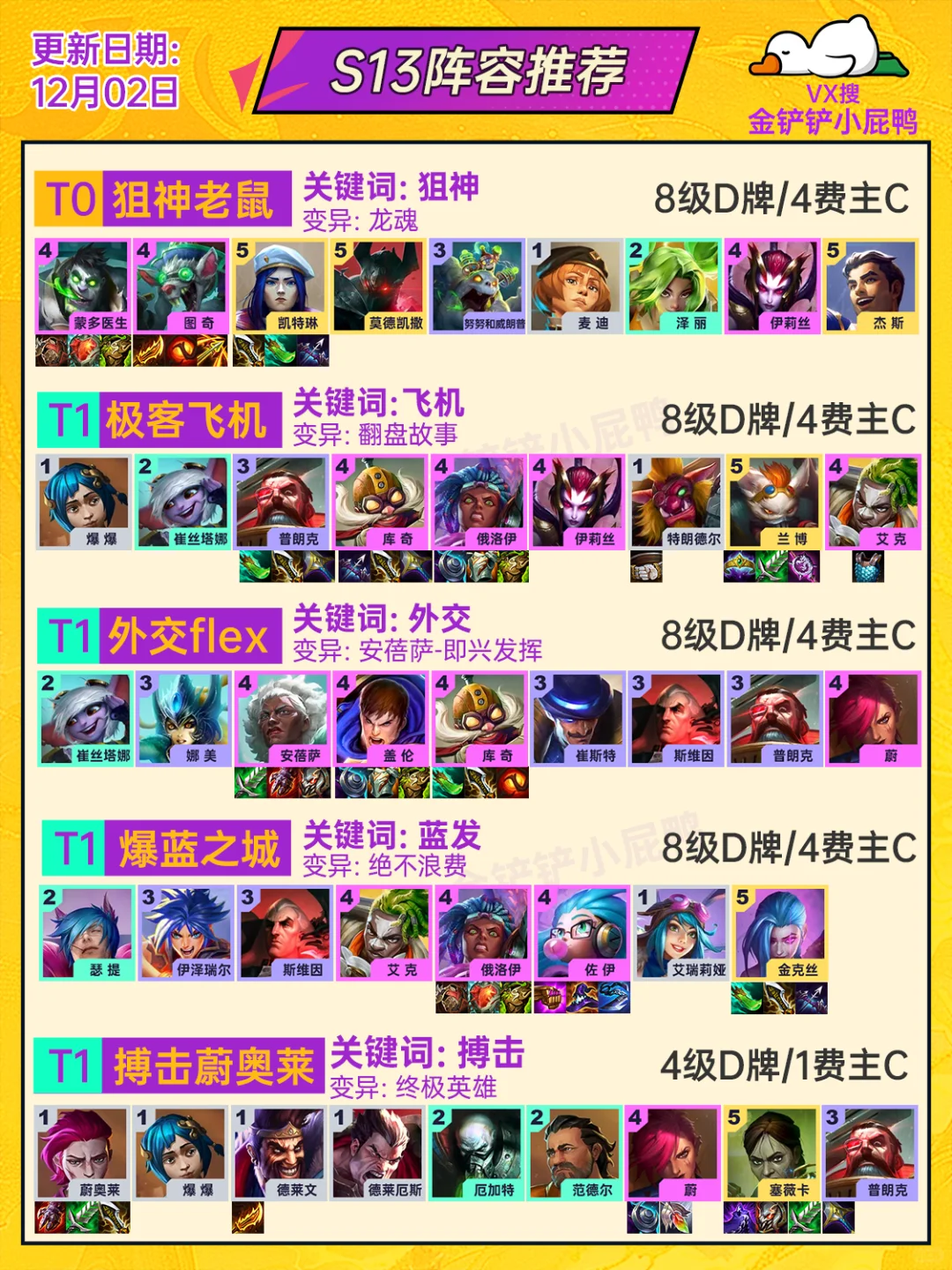 12月02日阵容推荐!这几套阵容在铲巅杀疯了