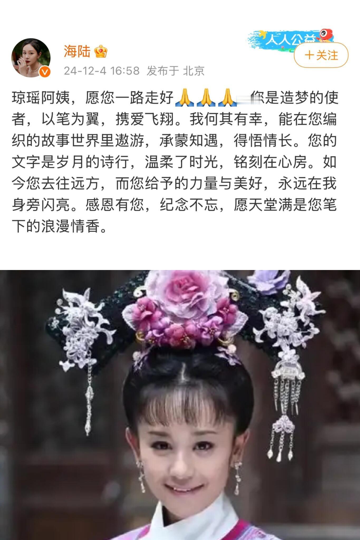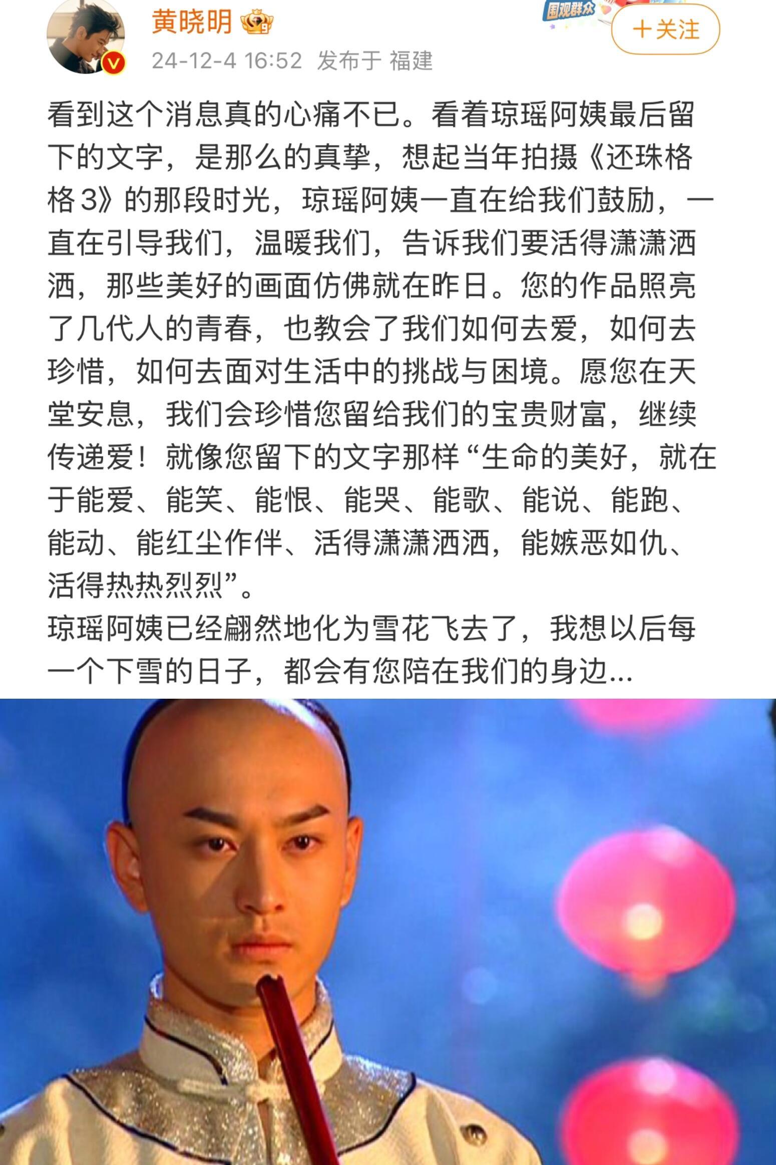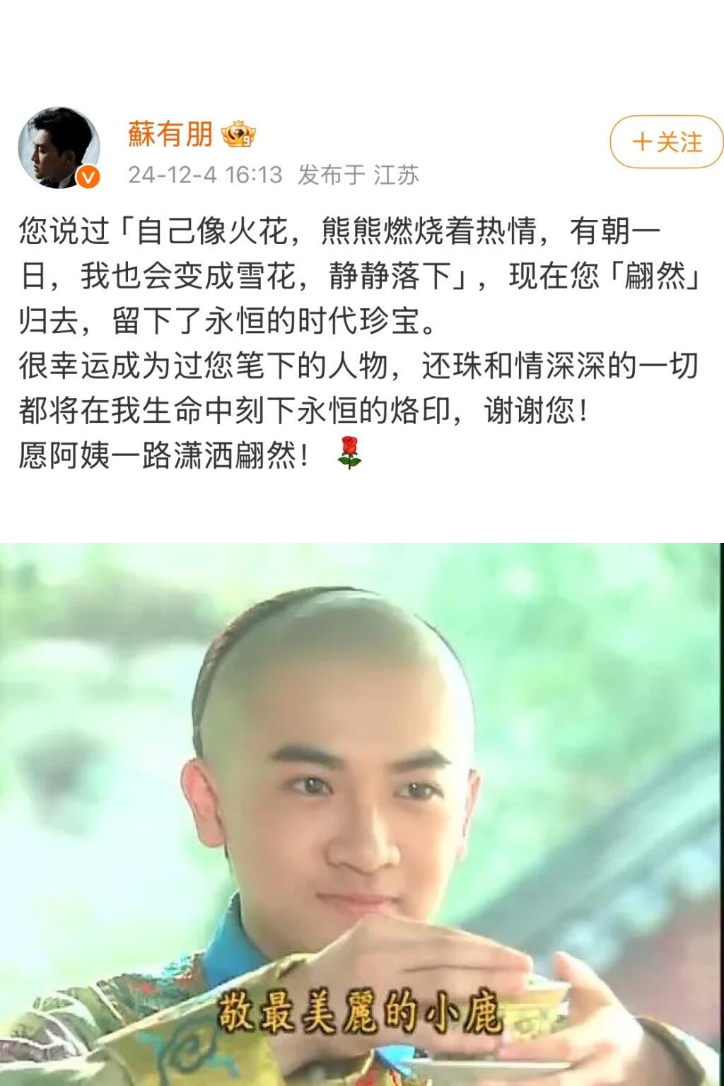 琼瑶自s去世享年86岁,苏有朋、林心如、陈志朋、王琳、保剑锋、黄奕、黄晓明、秦岚、李佳航、海陆、林青霞……人纷纷发文悼念